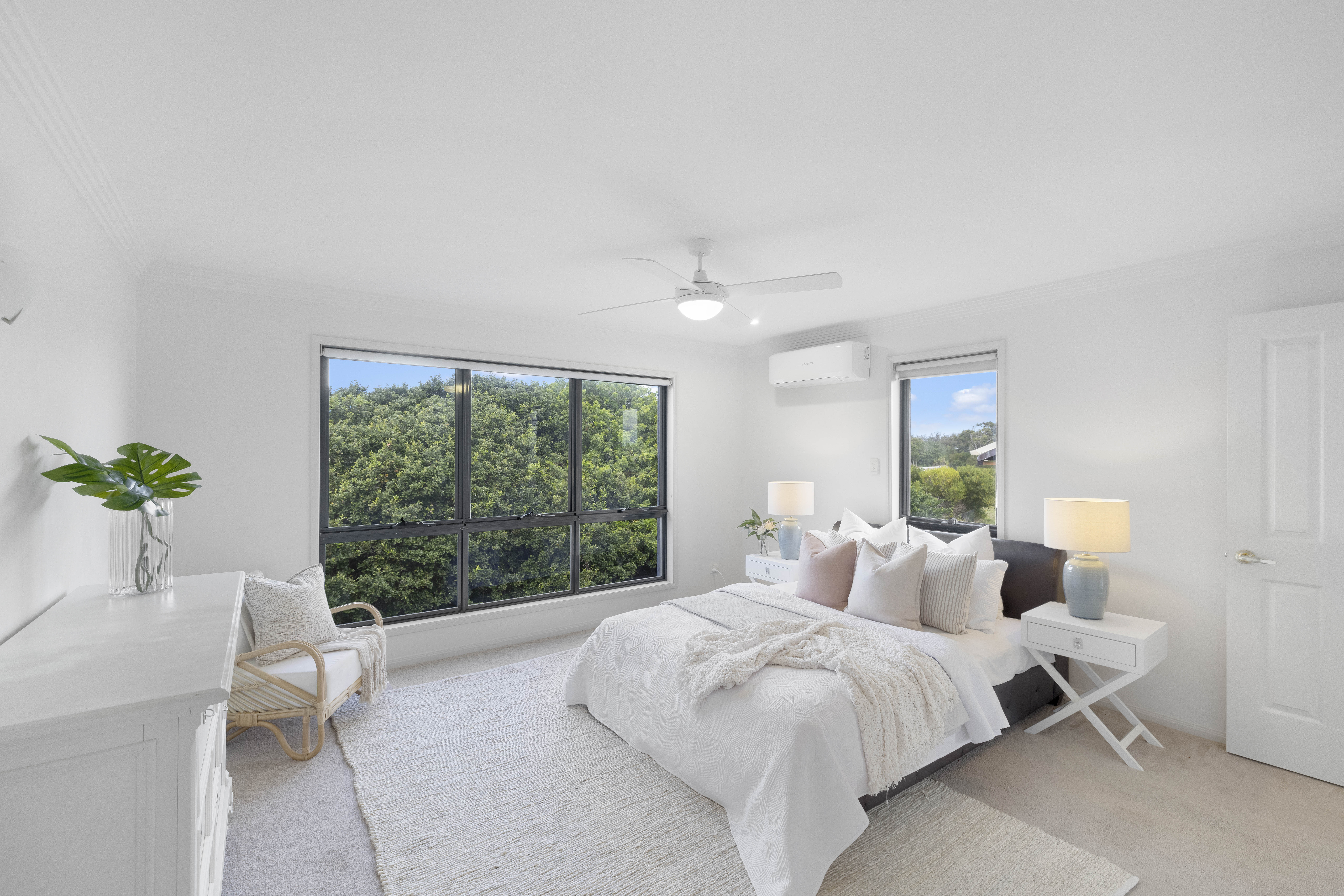 Across two levels it comprises private entry, five bedrooms, two bathrooms, open plan living, well-equipped kitchen, eastern covered alfresco terrace, western juliette balcony, large outdoor entertaining positioned off the self contained ground level with a leafy backdrop, triple lock-up garage with laundry facilities and excellent storage throughout.