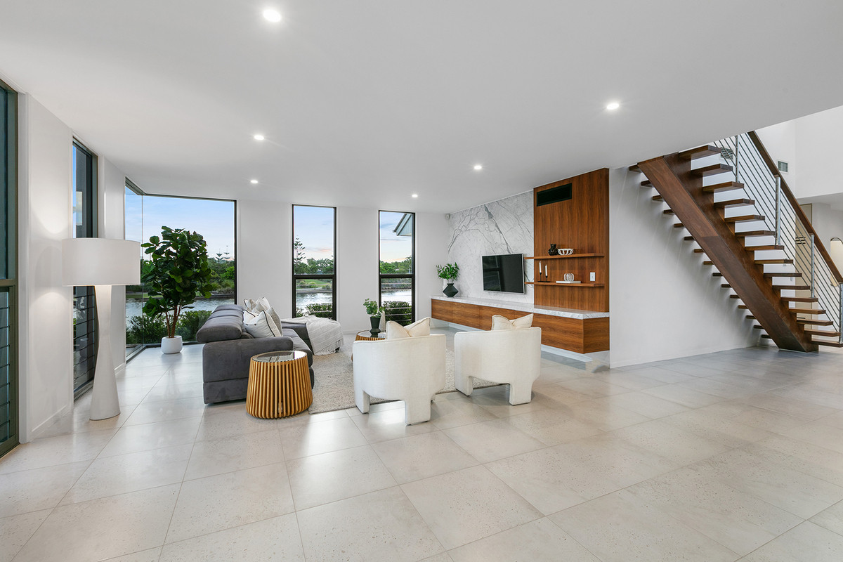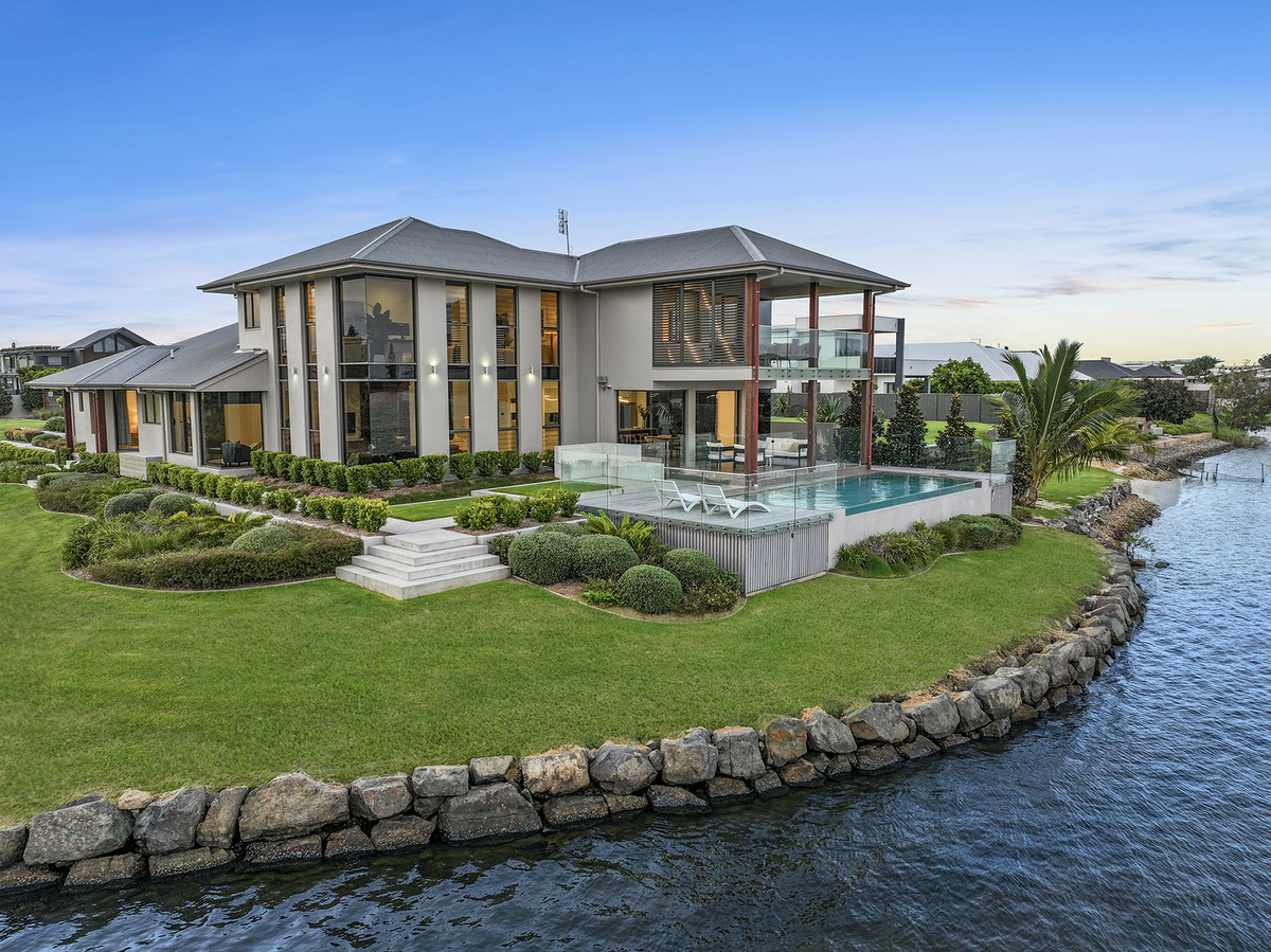 Step into an extraordinary realm of refined luxury with this impeccable 4-bedroom plus office, 3-bathroom, 3-car residence, seamlessly blending sophistication with comfort. Nestled on a sprawling 2483 sqm east-facing block, this exclusive property showcases approximately 100m of waterfrontage, offering an unparalleled living experience.
