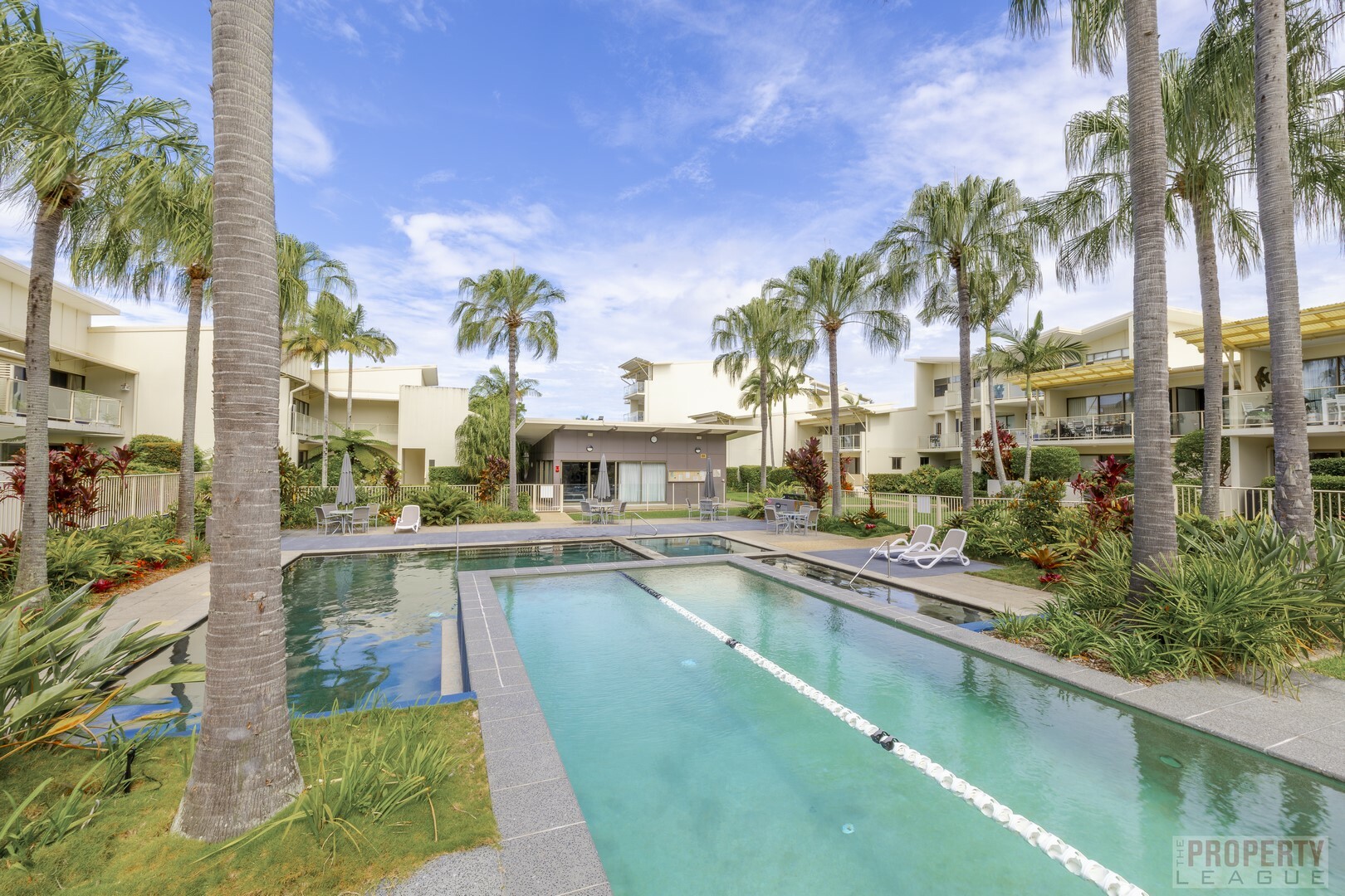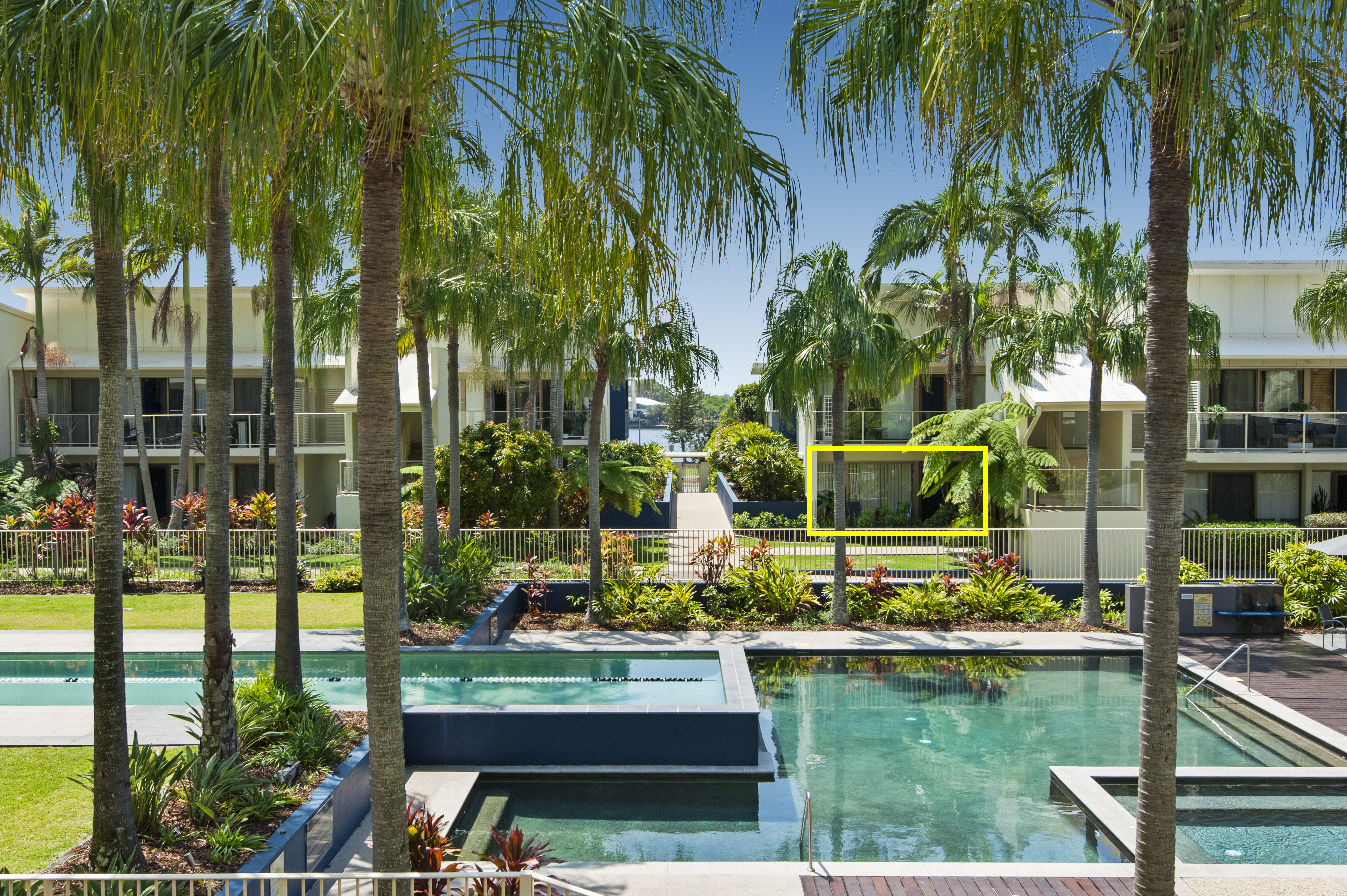 At the front southern entry there is a lovely little garden area with room to sit on your terrace and take in the pleasant tropical views of the lagoon and spa pools with a separate 2 lane 20 metre lap pool up above and there's plenty of space around the pools for catching a few rays or catching up with friends for a sundowner at the end of the day!