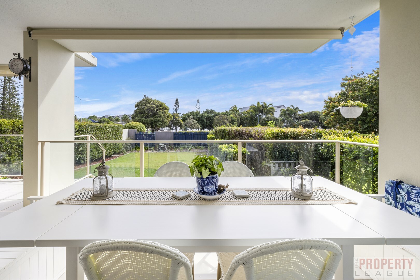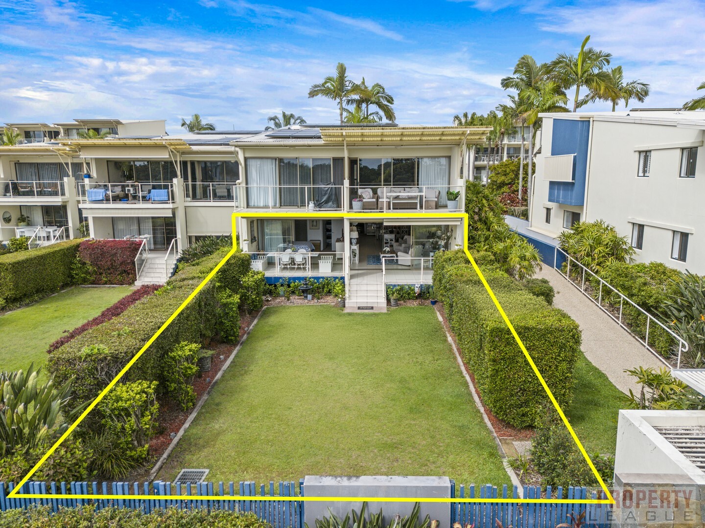 When you walk through the front door you will be amazed at the lovely views, seamless flow through with great cross ventilation and spacious open plan. It has very generous wide balconies leading down a few steps to an almost 100 metre square exclusive use courtyard then across Double Bay Park to the sandy beaches and glistening Parrearra Lake that leads out to the Mooloolah River and beyond to the Pacific Ocean!