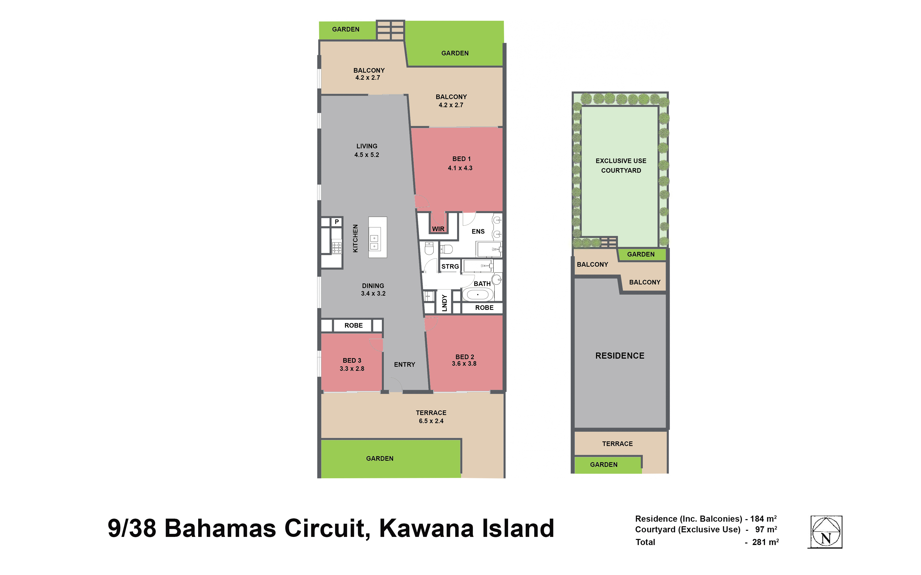 Spacious Ground Floor with lovely Water Views across Courtyard totalling 281 M2 ENTRY AT CAYMAN PLACE GATE OPPOSITE DOUBLE BAY BEACH PARK AND LAKE, YOU WILL BE DIRECTED UP THROUGH COURTYARD!