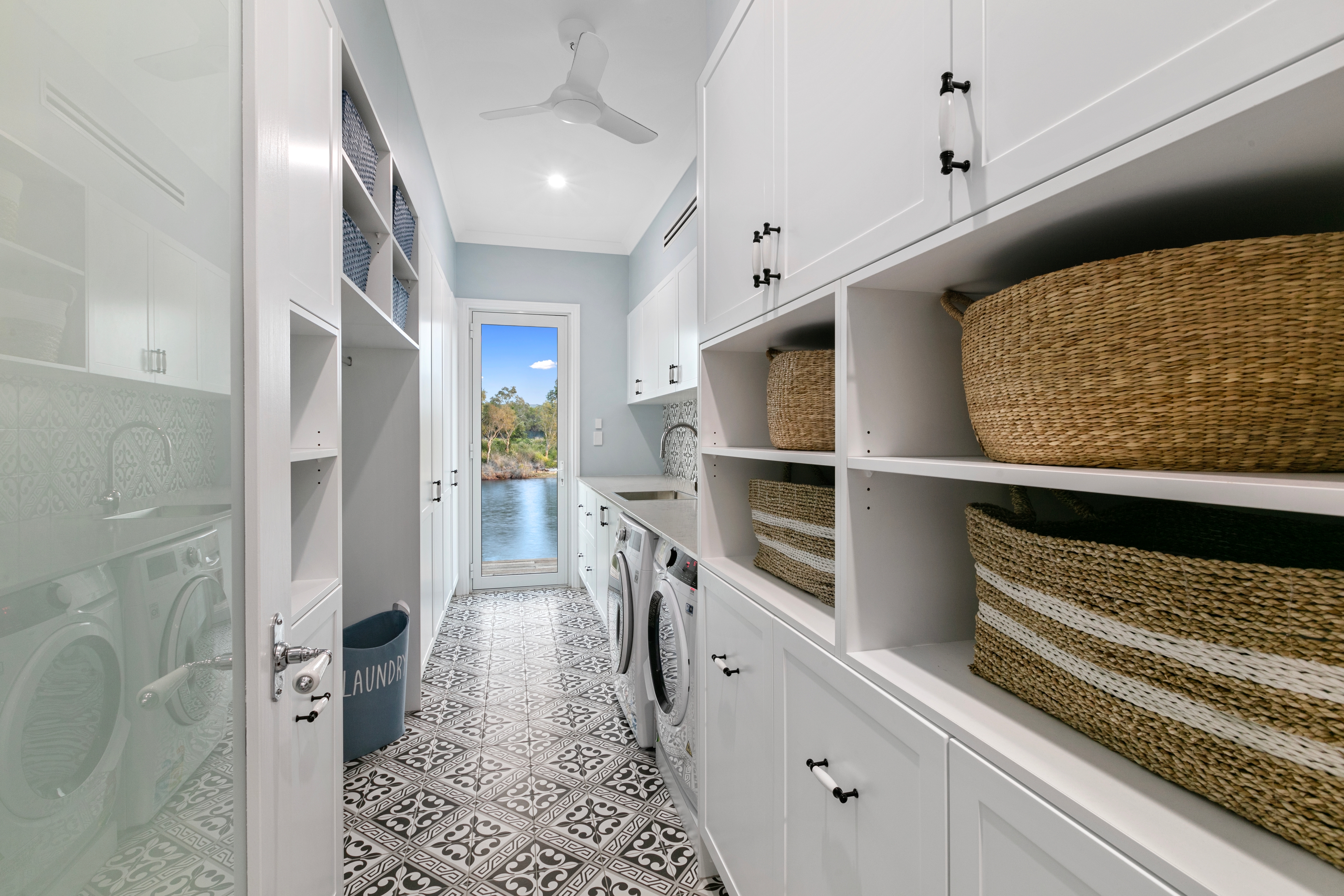 There are 5 spacious bedrooms, all with water views, with one of the master bedrooms on the ground floor and the second master bedroom upstairs. Four bedrooms offer ensuite facilities and there are 4 walk-in robes, 5 bathrooms in total plus an additional powder room.
