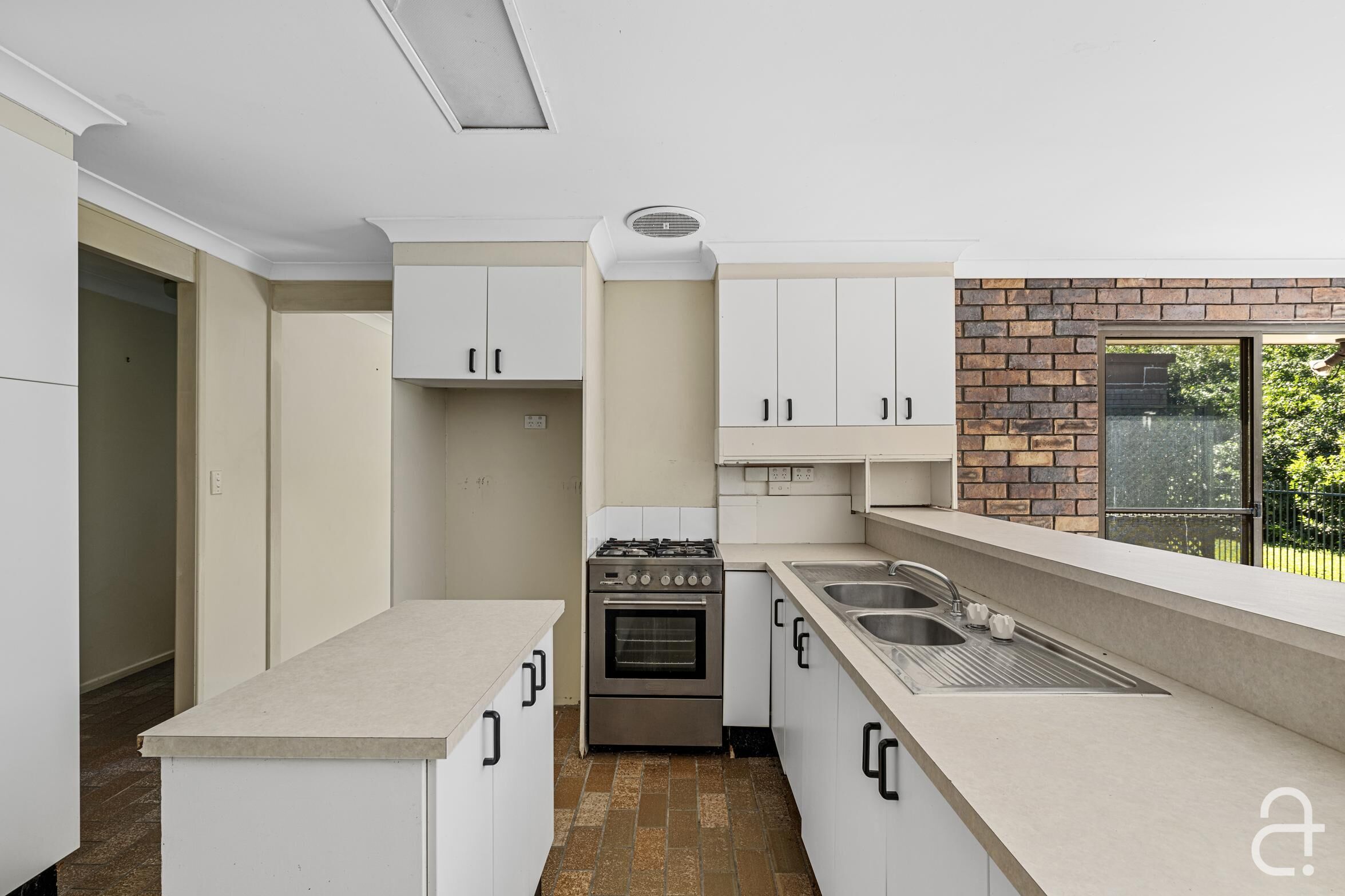 The practical floorplan includes multiple separate living zones, but with a comprehensive renovation, you could create an open-plan layout that maximises natural light and coastal breezes. The centrally located kitchen, currently equipped with ample bench and storage space, is ripe for modernisation to suit your culinary preferences.