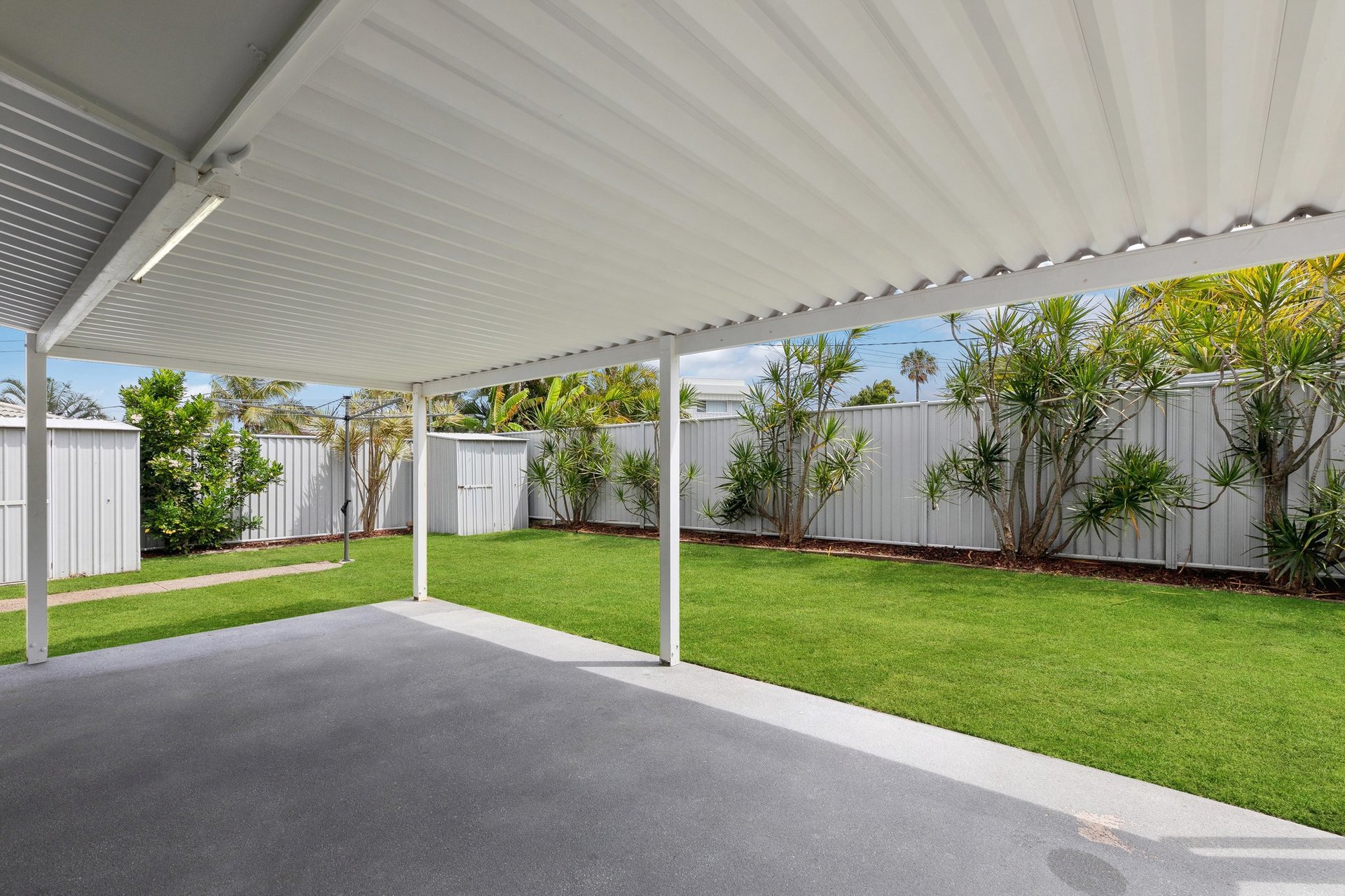 - Freshly updated rear outdoor space great for the kids & pets – includes 2 sheds. - Double carport with room for additional cars or boat on large hardstand area