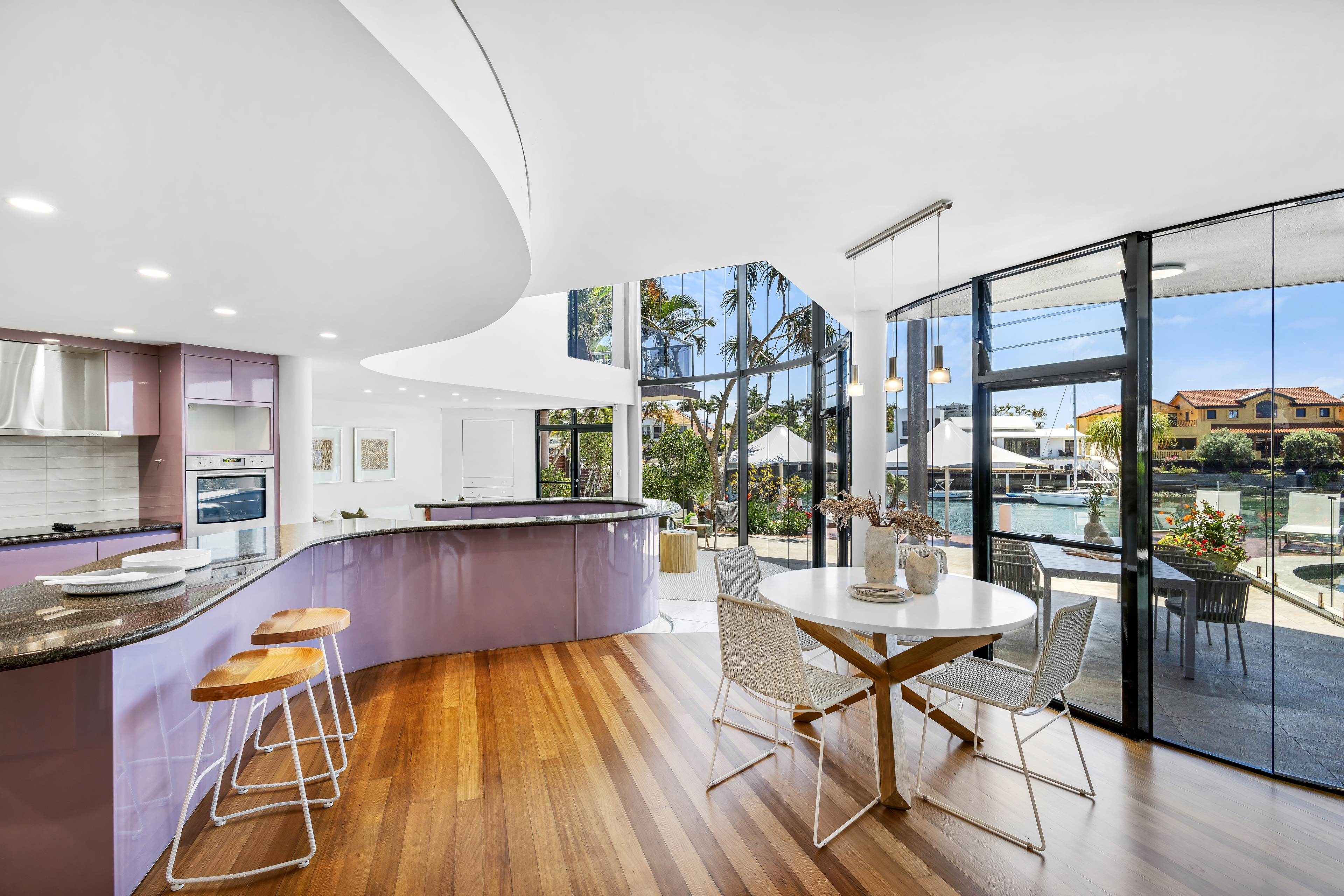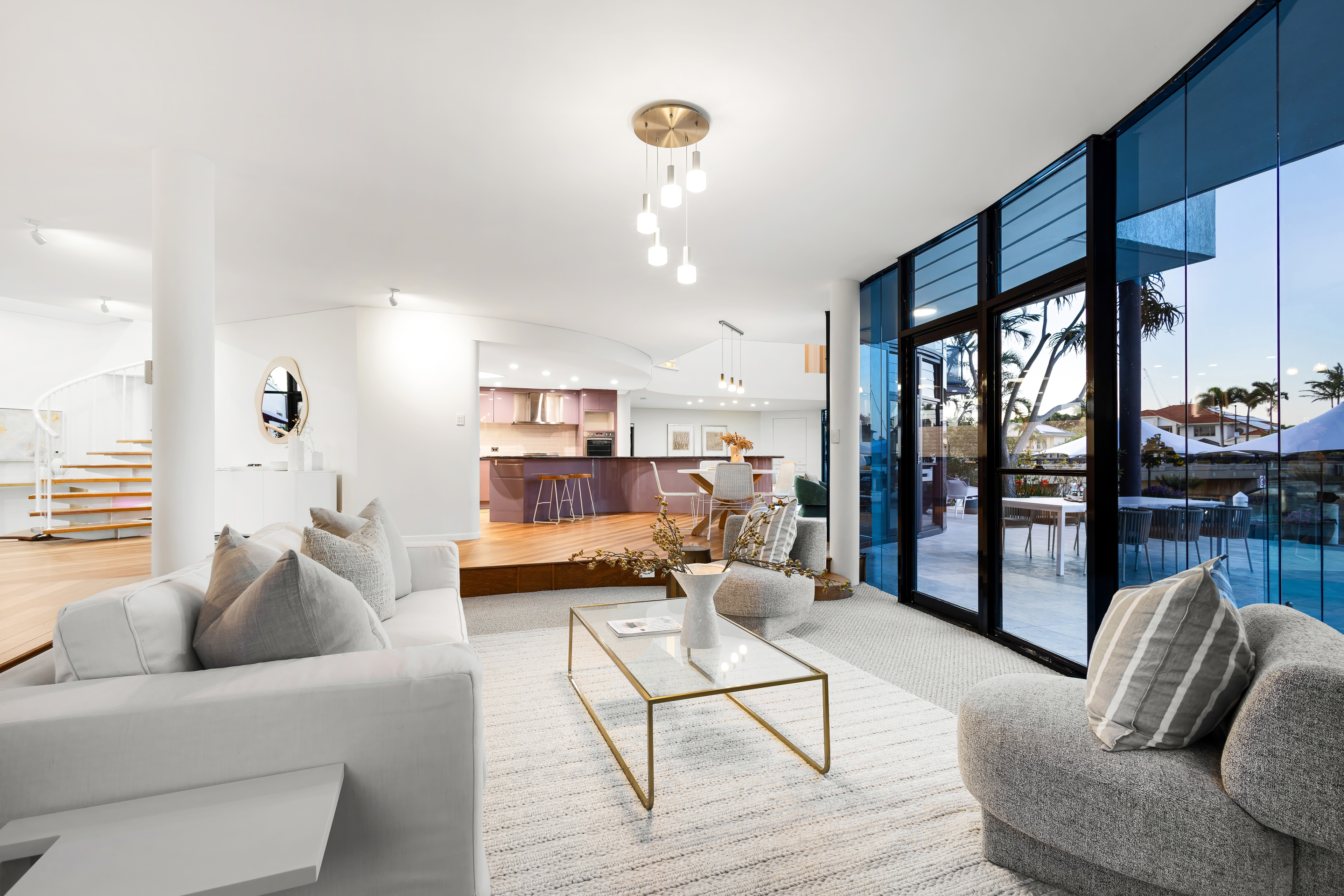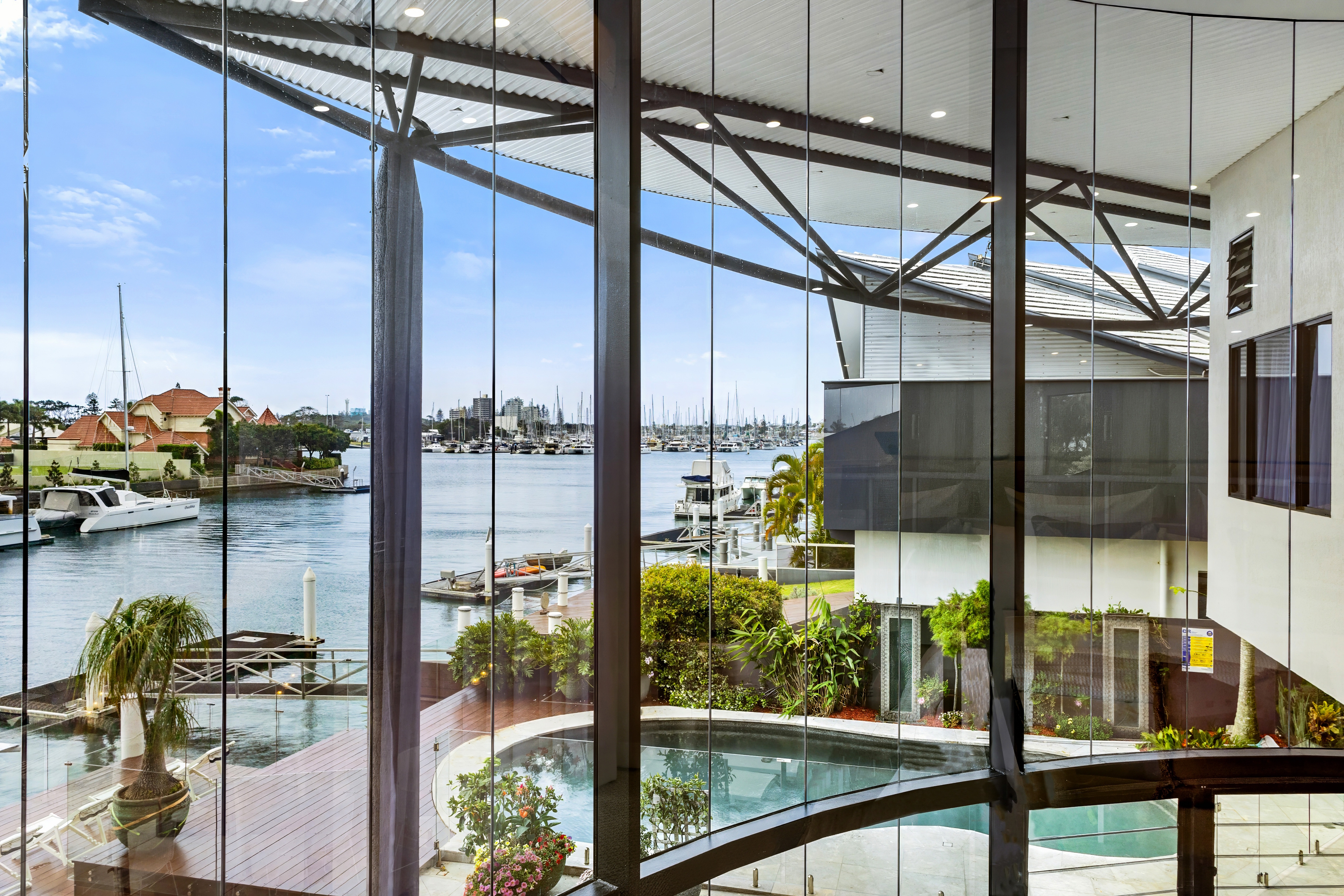 The ground floor incorporates generous spaces with floor to ceiling glass feature windows capturing spectacular views. There are multiple living spaces throughout this level which include, formal dining, living room, family room, and a separate media room. Both the kitchen and casual dining area face to the water and offer all the mod cons expected from a large home of this quality.