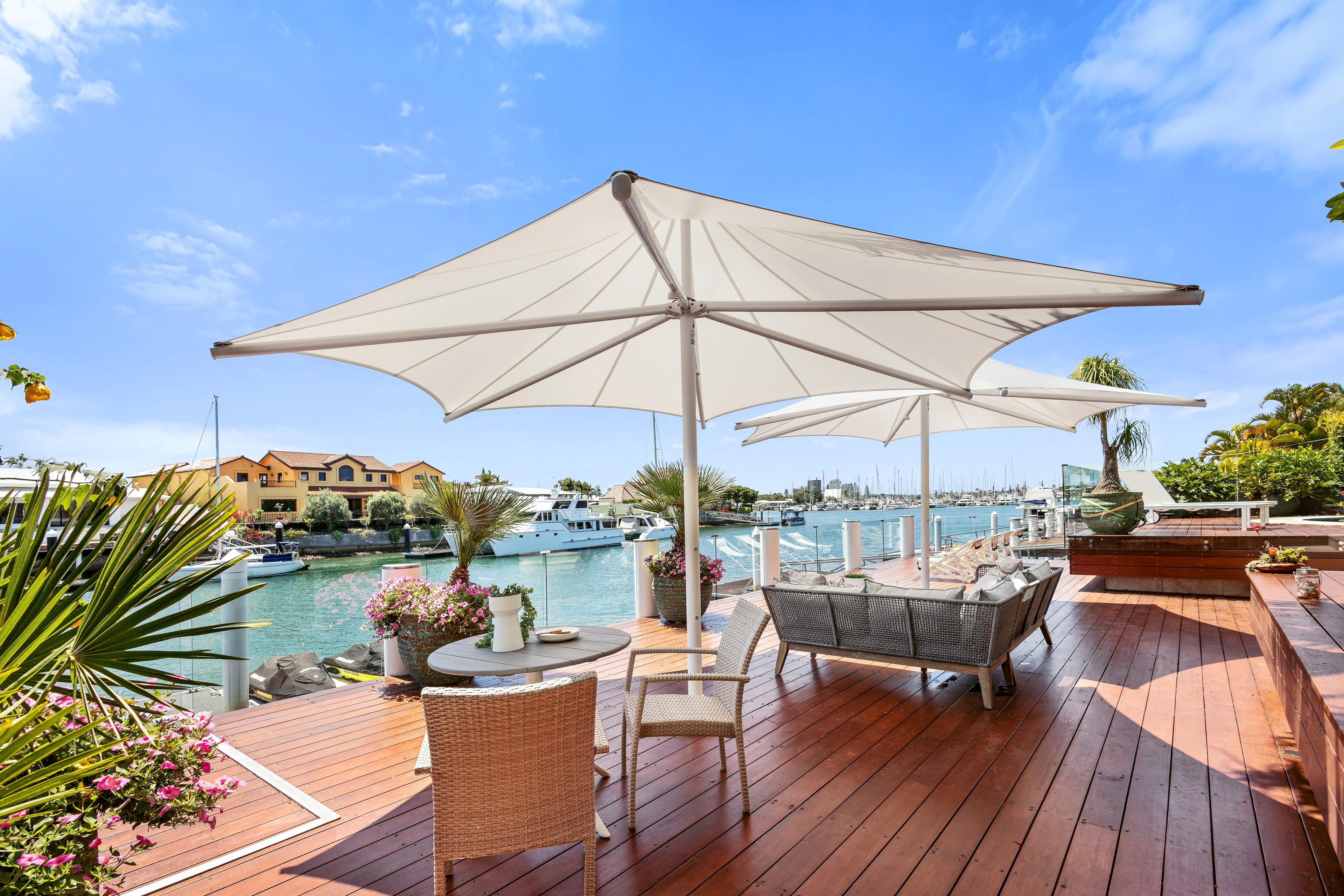The outside spaces come to life with a recently renovated decked area which extends over the water.