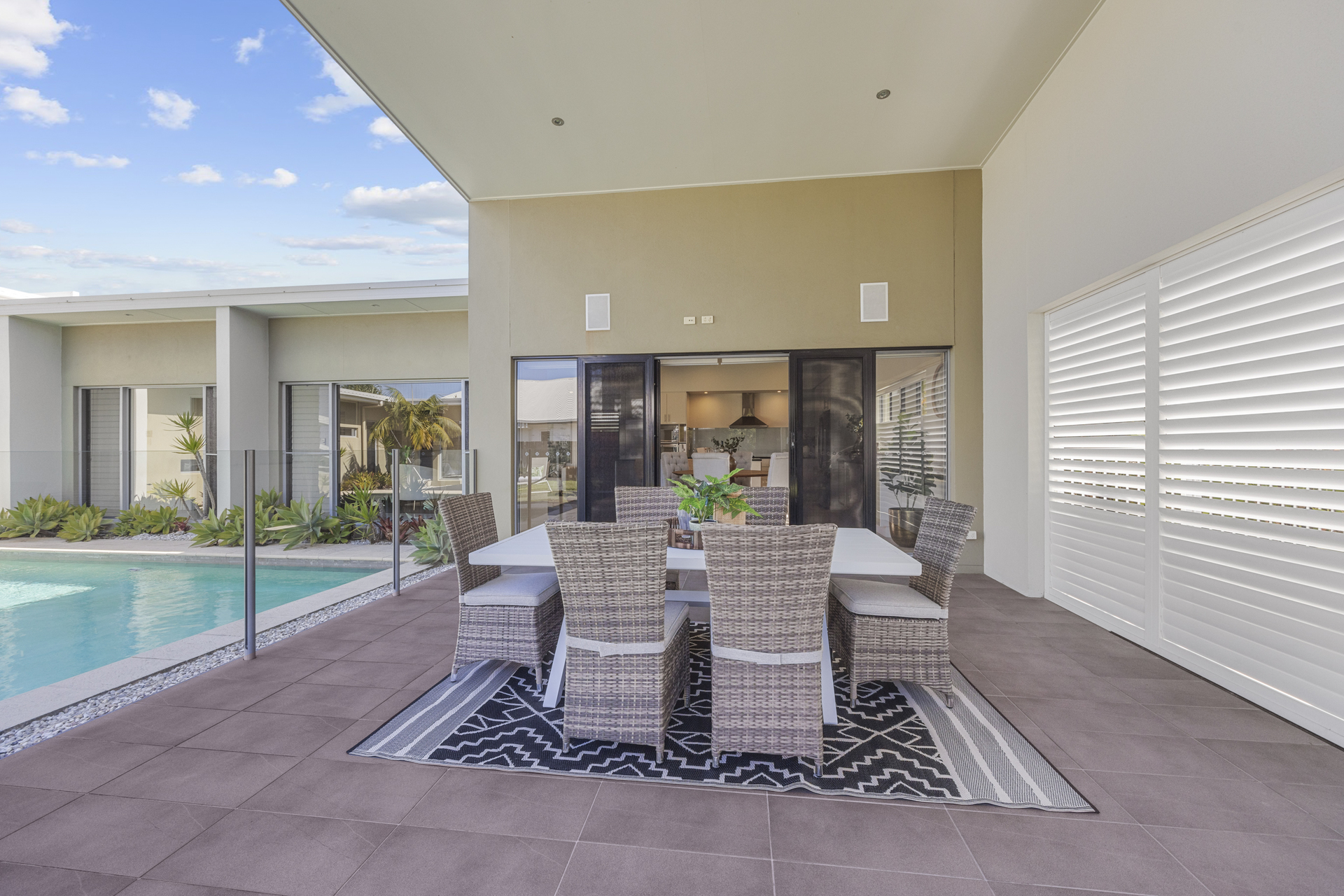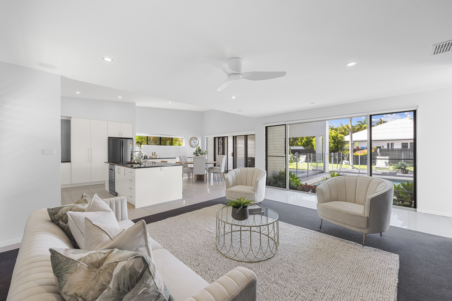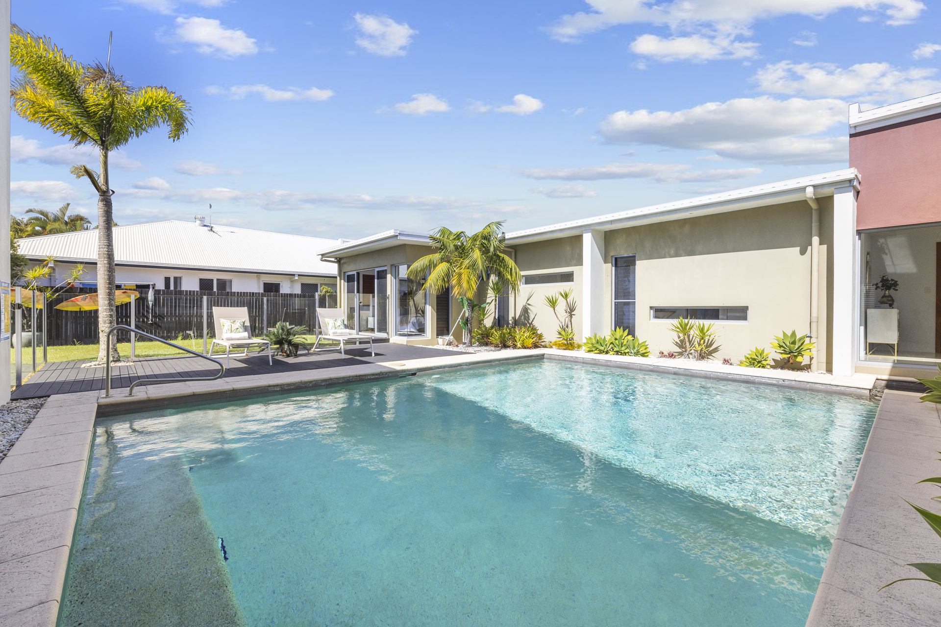 Presentation is pristine and the floor plan is well designed facilitating seamless integrated indoor/outdoor living in symmetry with the Sunshine Coast climate and lifestyle; and it showcases the pool– a striking centrepiece of the home, from virtually all rooms.