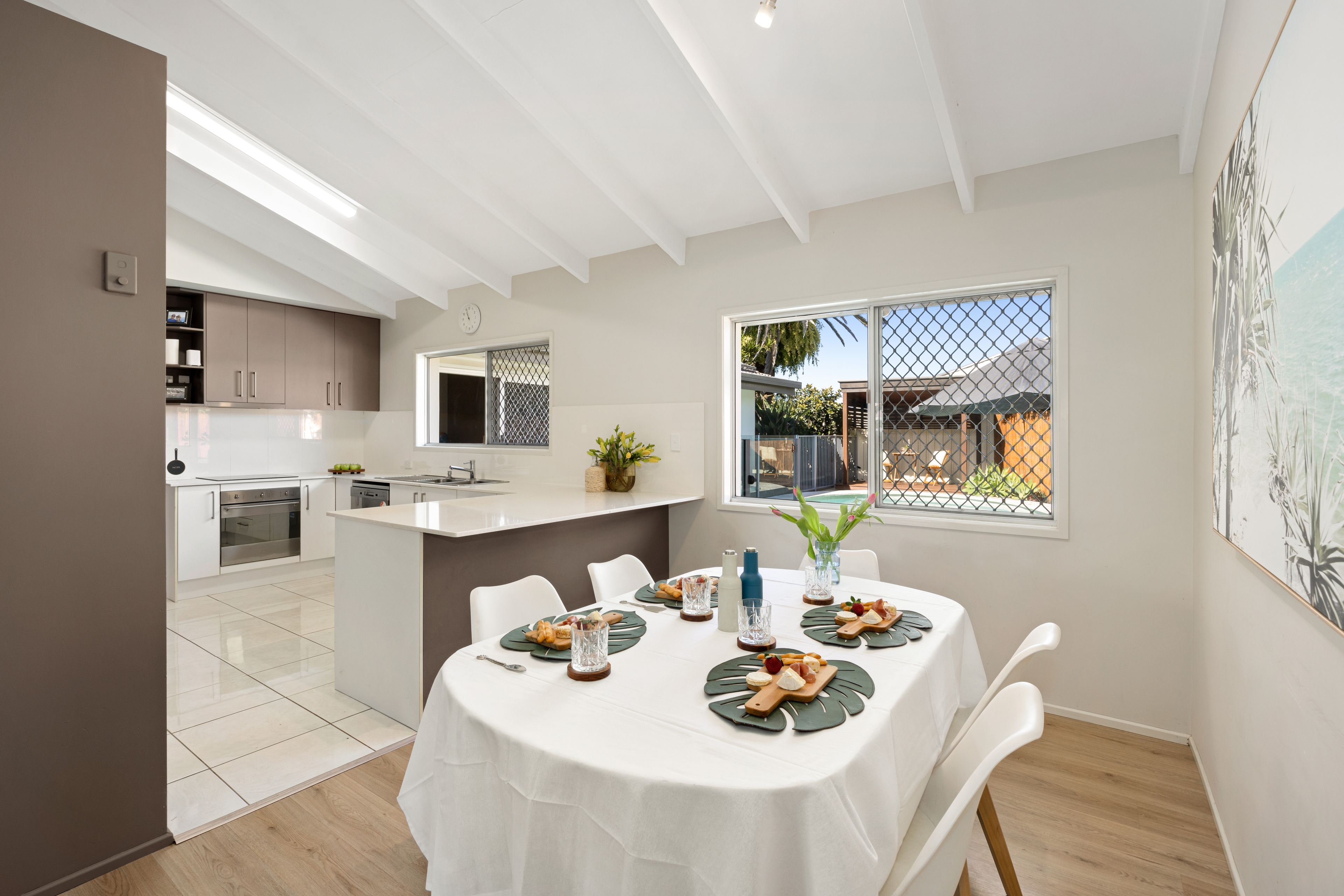 Designed with NDIS accessibility in mind, the home features four spacious bedrooms, two bathrooms, and a versatile floor plan with two separate living zones, ideal for family living and entertaining. Relax and unwind in your own tropical oasis with a stunning pool.