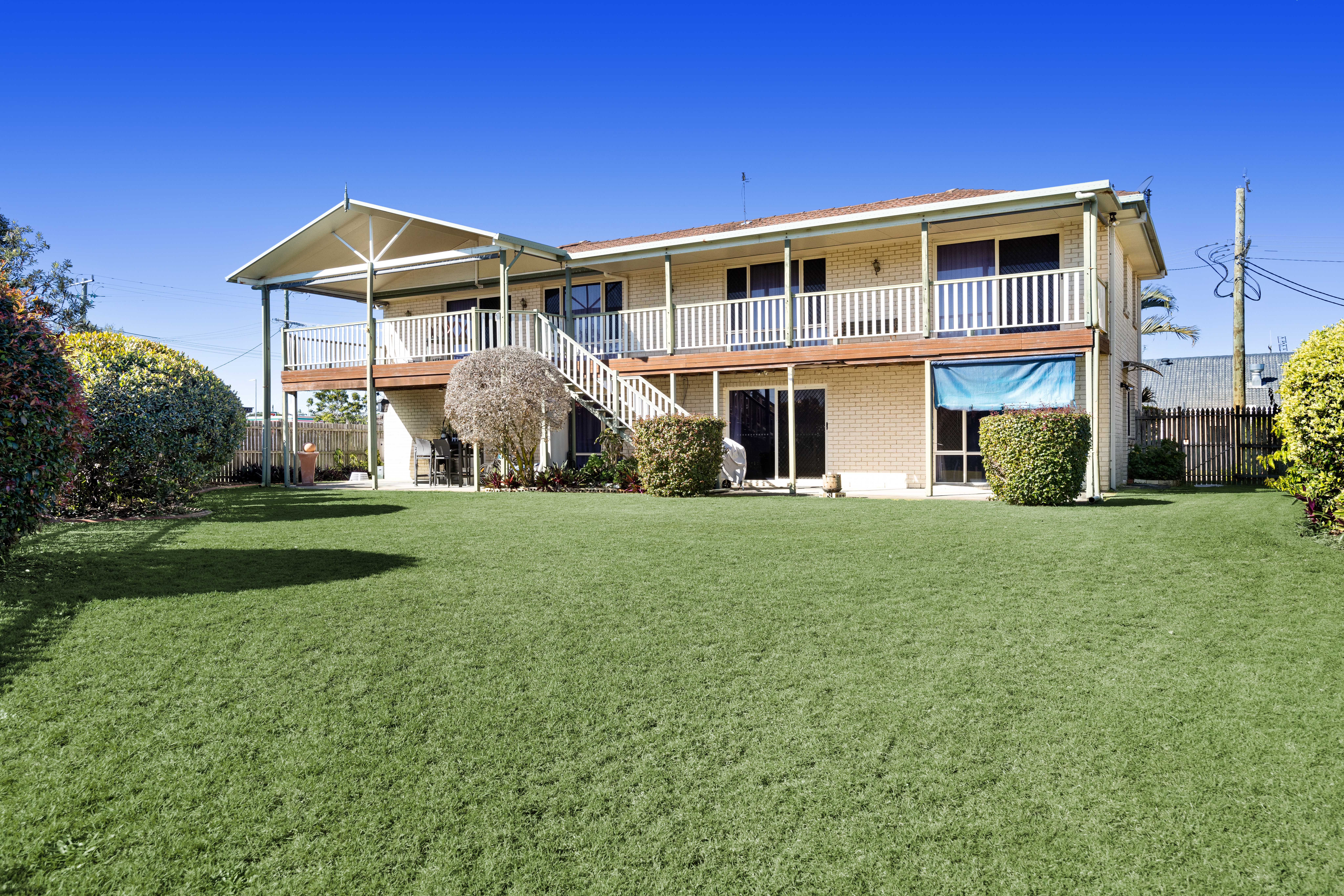With the focus on a relaxed waterfront lifestyle, this original high-set brick and tile home is perfect for the large or extended family and is currently configured for dual living with a two-bedroom flat downstairs and a second two-bedroom residence upstairs.