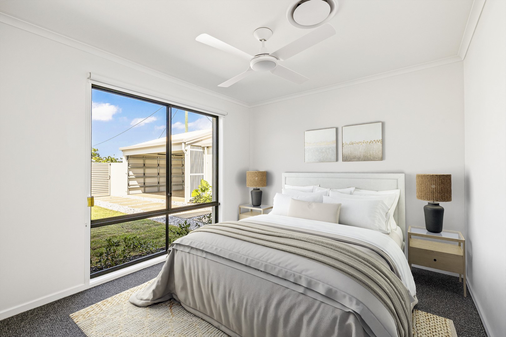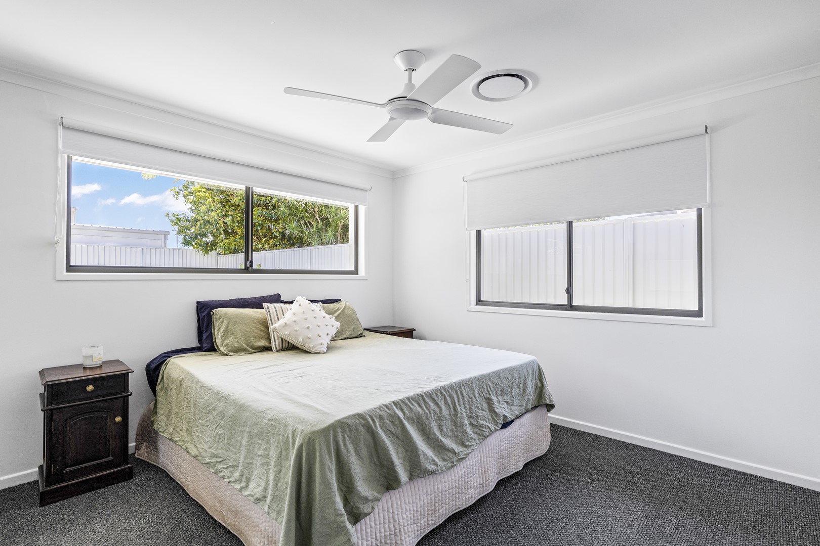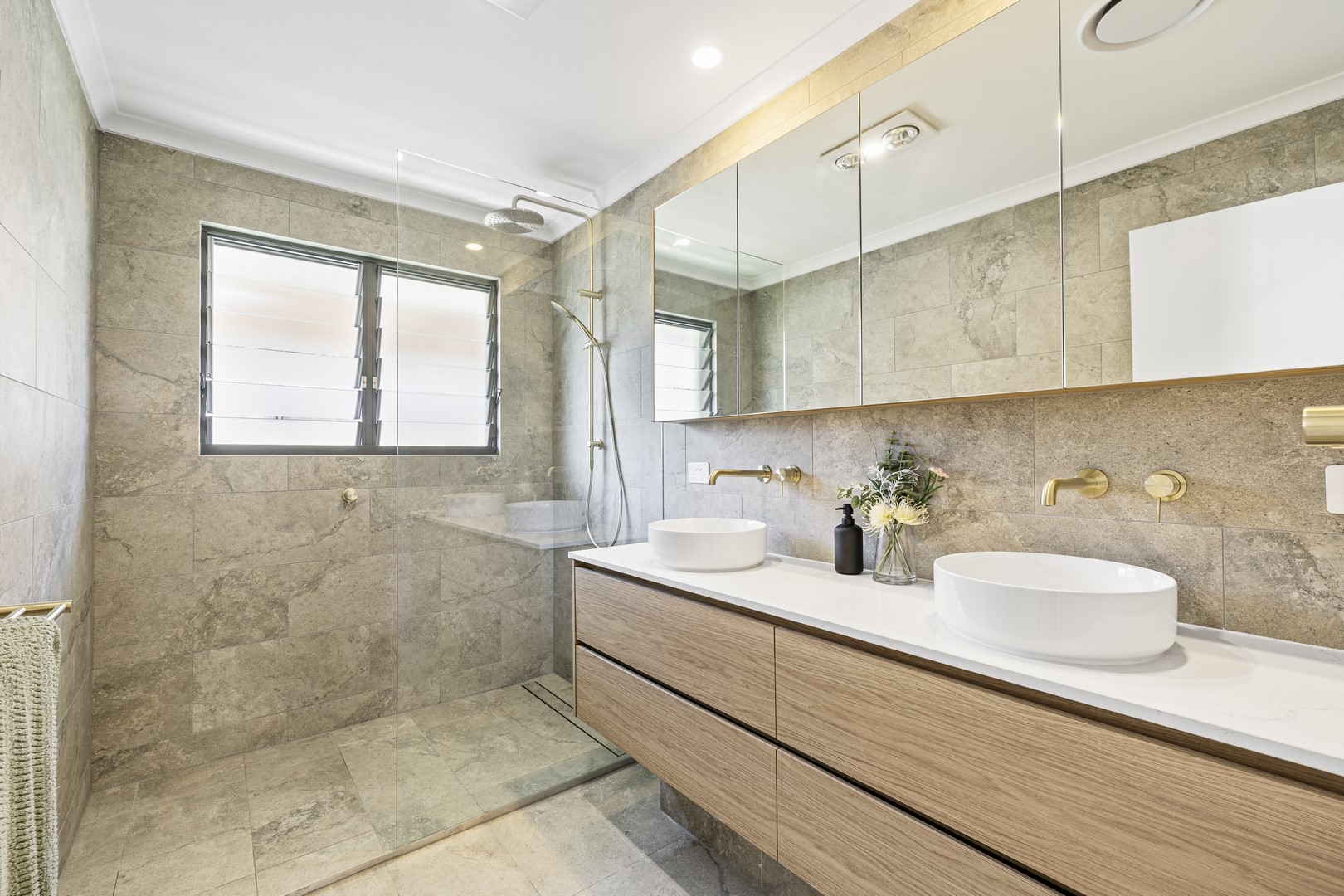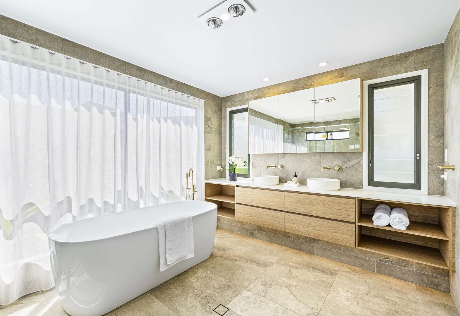 A window by the bathtub opens to a freshly planted garden filled with 'True Love' gardenias, set to bloom into a peaceful, fragrant oasis—creating the perfect serene escape. A second hot water system ensures the ensuite is always ready to go for relaxation when you need it most!