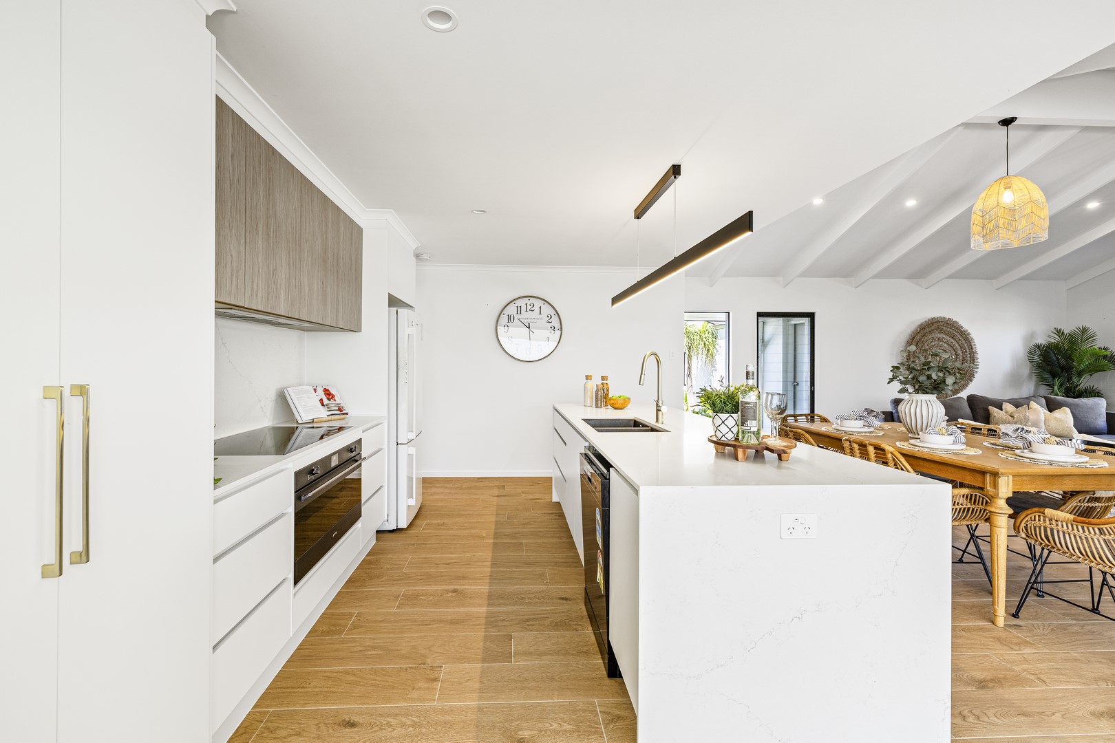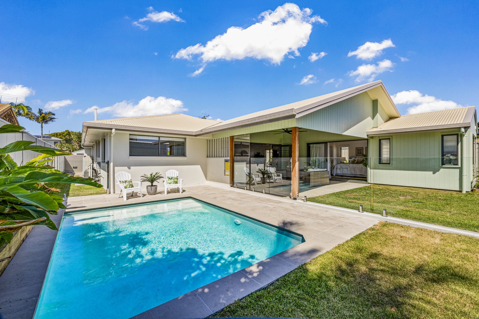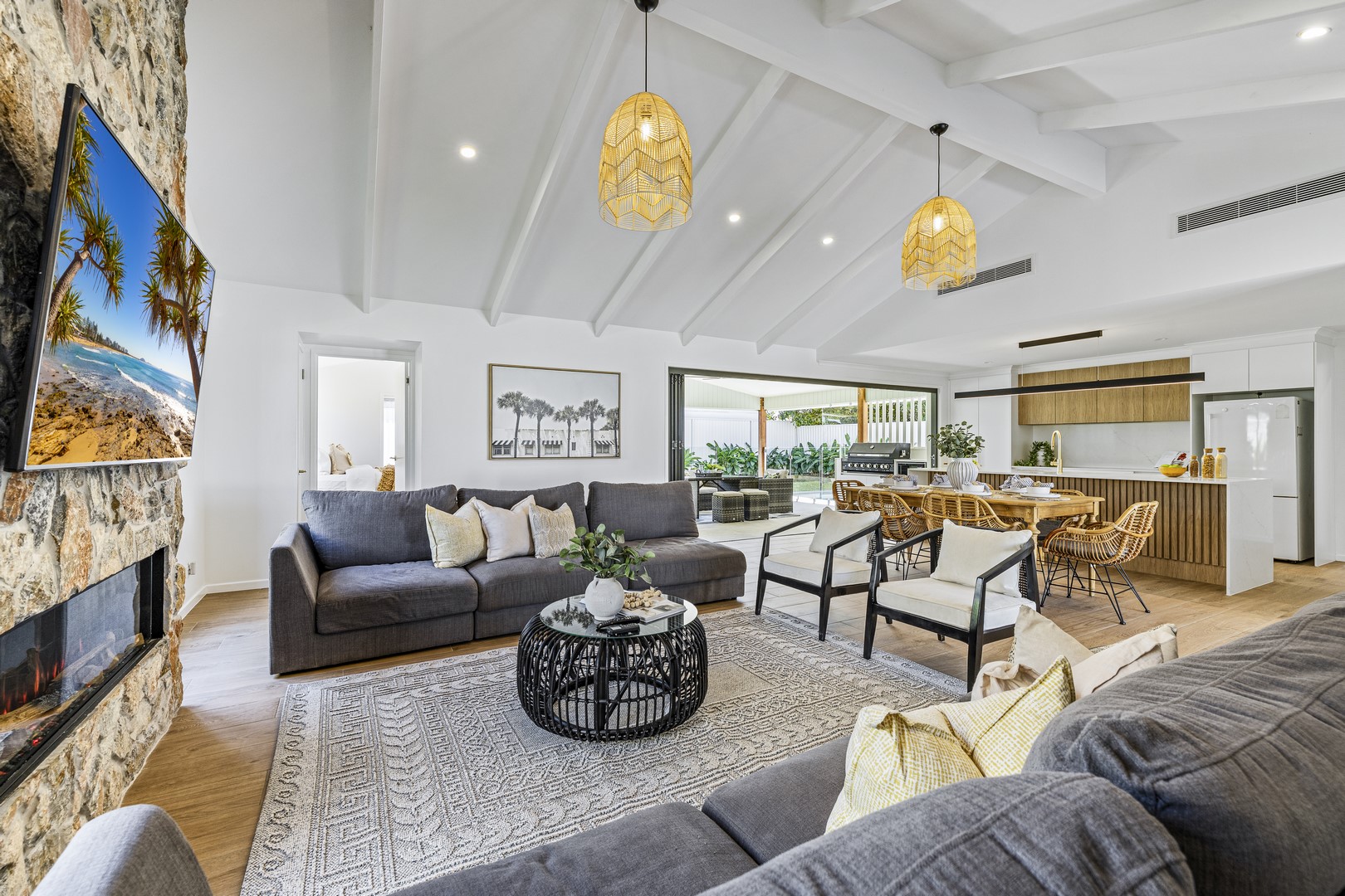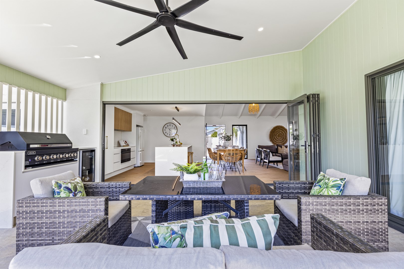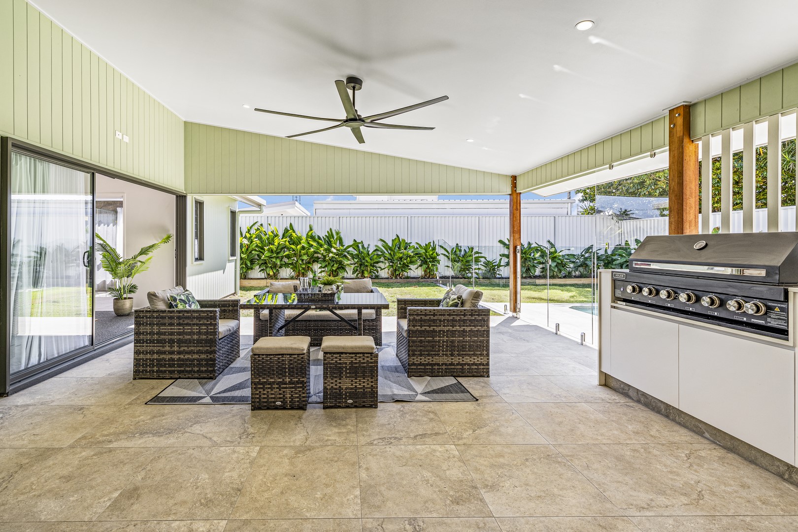 Stepping through the expansive 5-meter bifold doors into the alfresco area, it's effortless to picture hosting friends on a relaxed Saturday afternoon. Fire up your new Euro 6-burner BBQ as your favorite sports team plays on the wall-mounted TV, while the kids enjoy splashing in the brand-new pool. This space seamlessly blends indoor and outdoor living, perfect for creating memorable everlasting moments with family and friends.