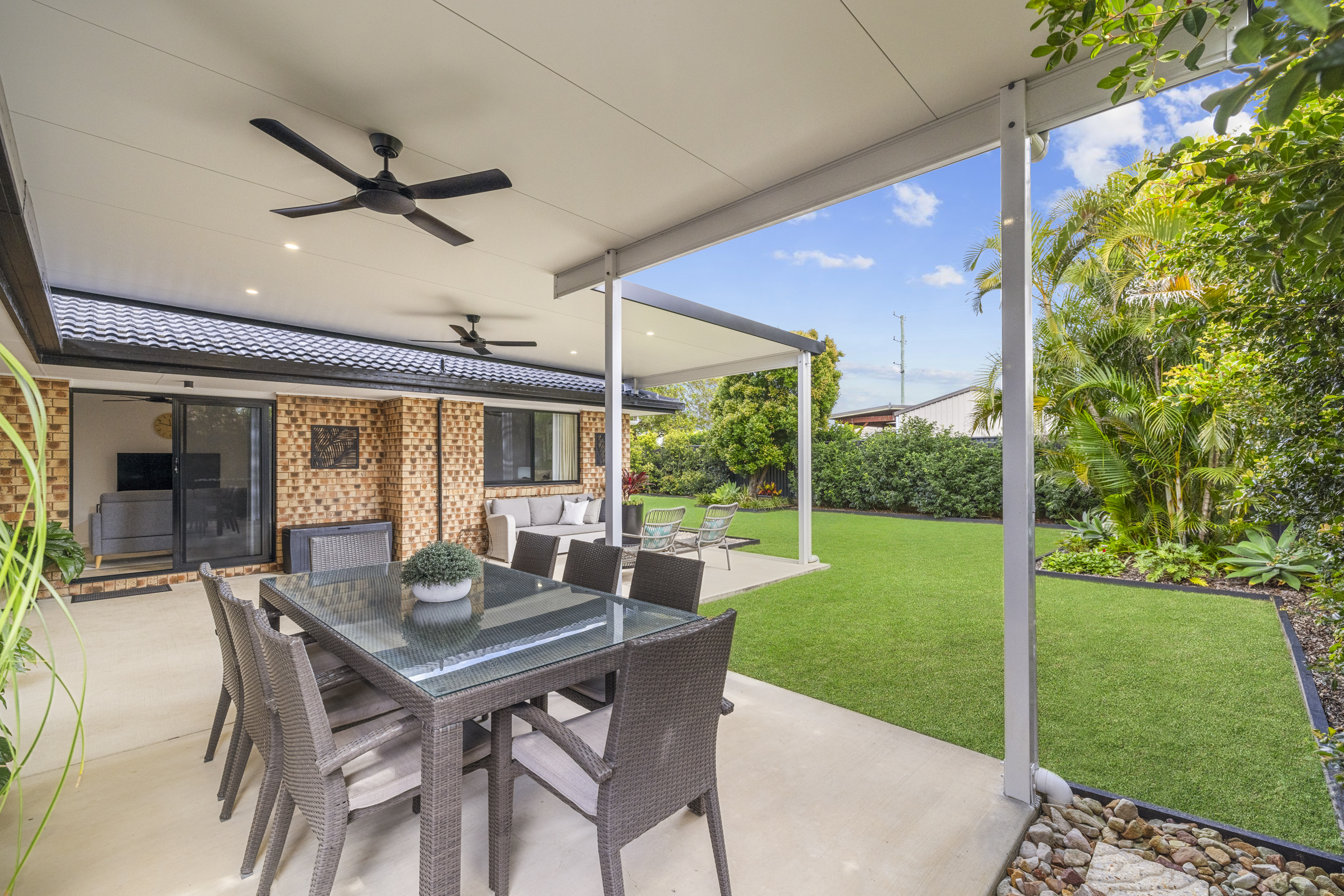 Other features you'll appreciate: • Expansive north-facing, undercover outdoor entertaining area, overlooking a beautifully landscaped, private yard. • Gourmet kitchen featuring 40mm stone benchtops, induction cooktop, stainless steel European appliances, a composite sink, and a spacious fridge cavity. • Two generously sized living areas. • Fully ducted air conditioning and ceiling fans for year-round comfort. • Spacious bedrooms. • Luxurious freestanding bath and rain shower head. • Secure, fully fenced property with remote gated entry. • Walk-in butler's pantry for added convenience. • Hot water outdoor shower, perfect for rinsing off after a day at the beach. • Ample storage throughout the home. • Plantation shutters that enhance the laid-back coastal vibe. • Security screens for peace of mind. • Remote garage door. • Handy garden shed for additional storage. • Easy stroll to the local shops, including the popular "B Fresh". • Perfectly positioned within proximity to stunning beaches, schools, shops, transport and the hospital.