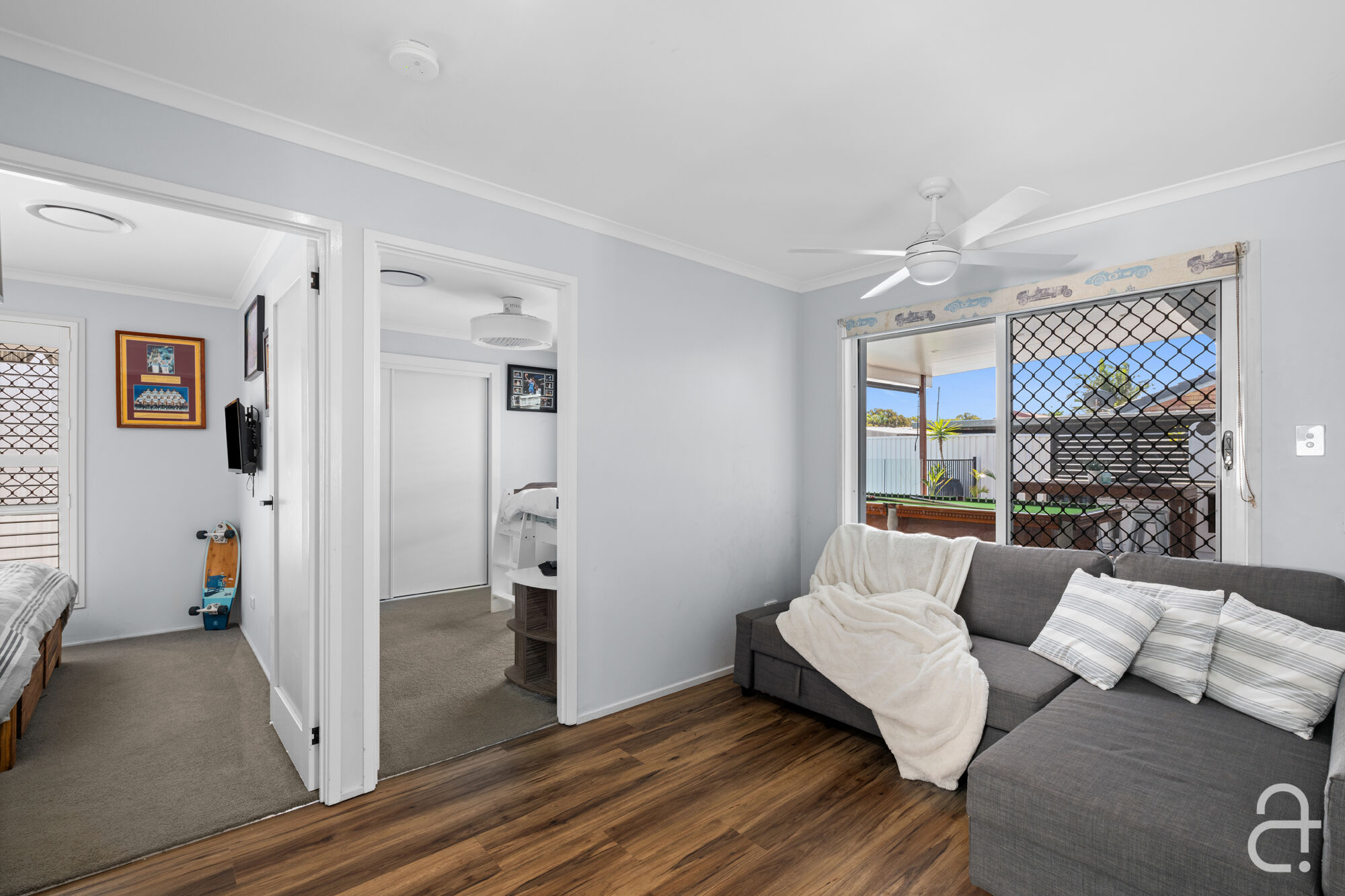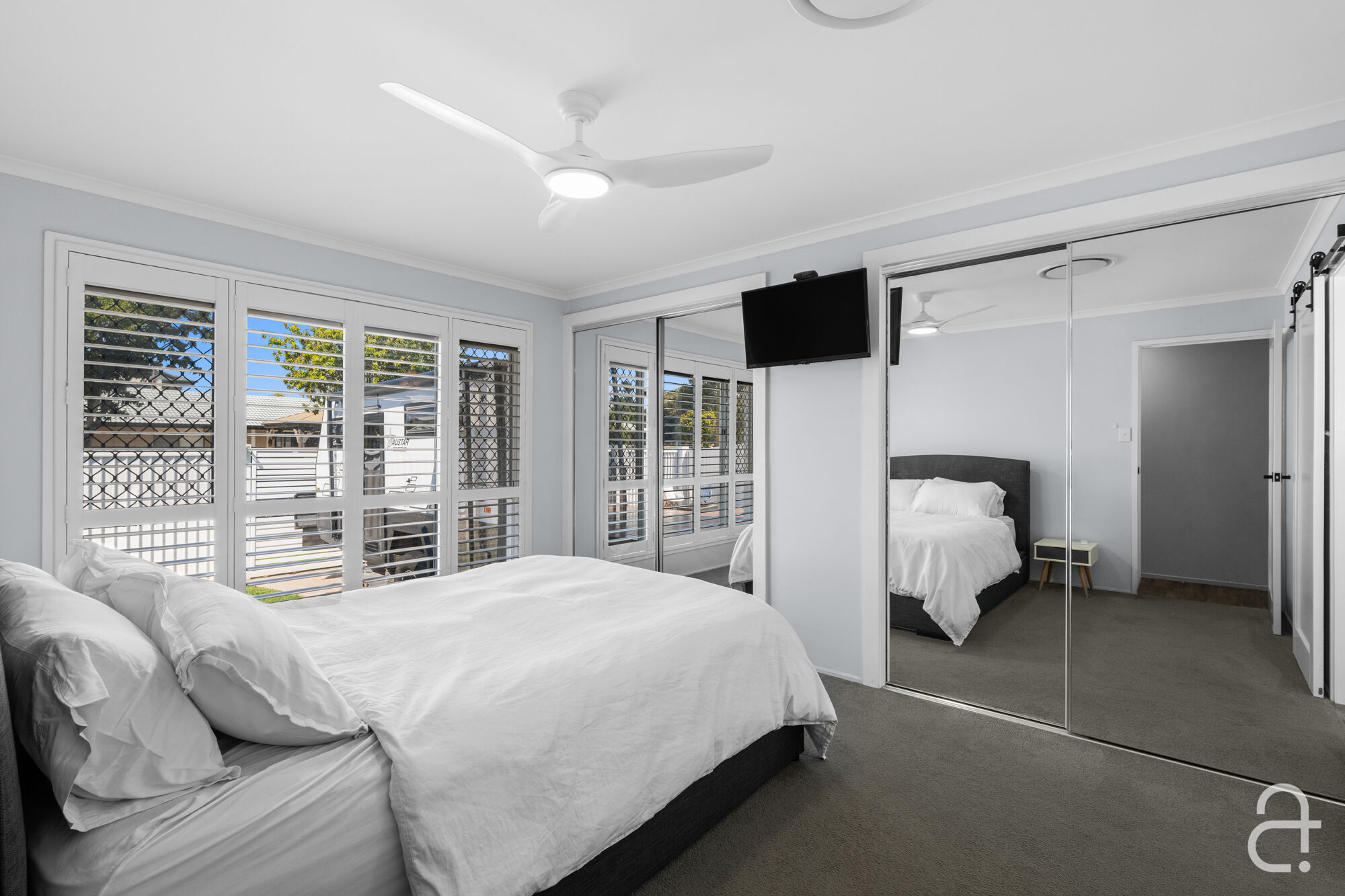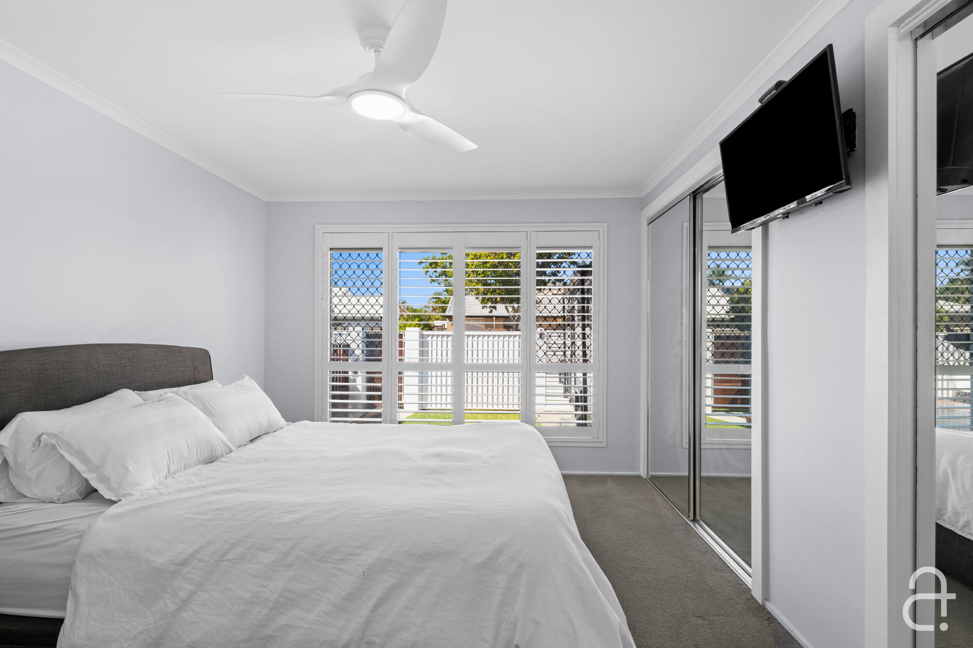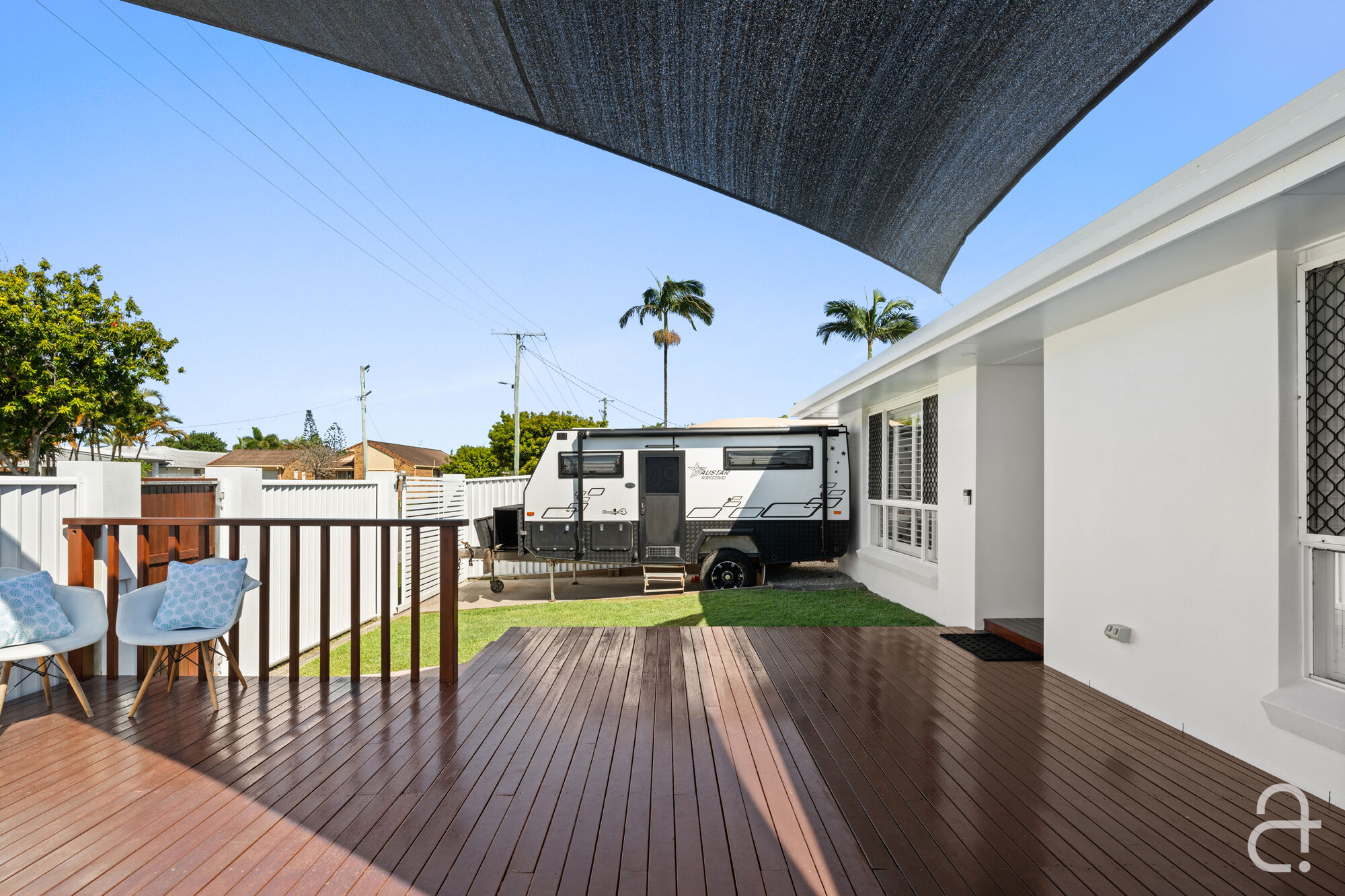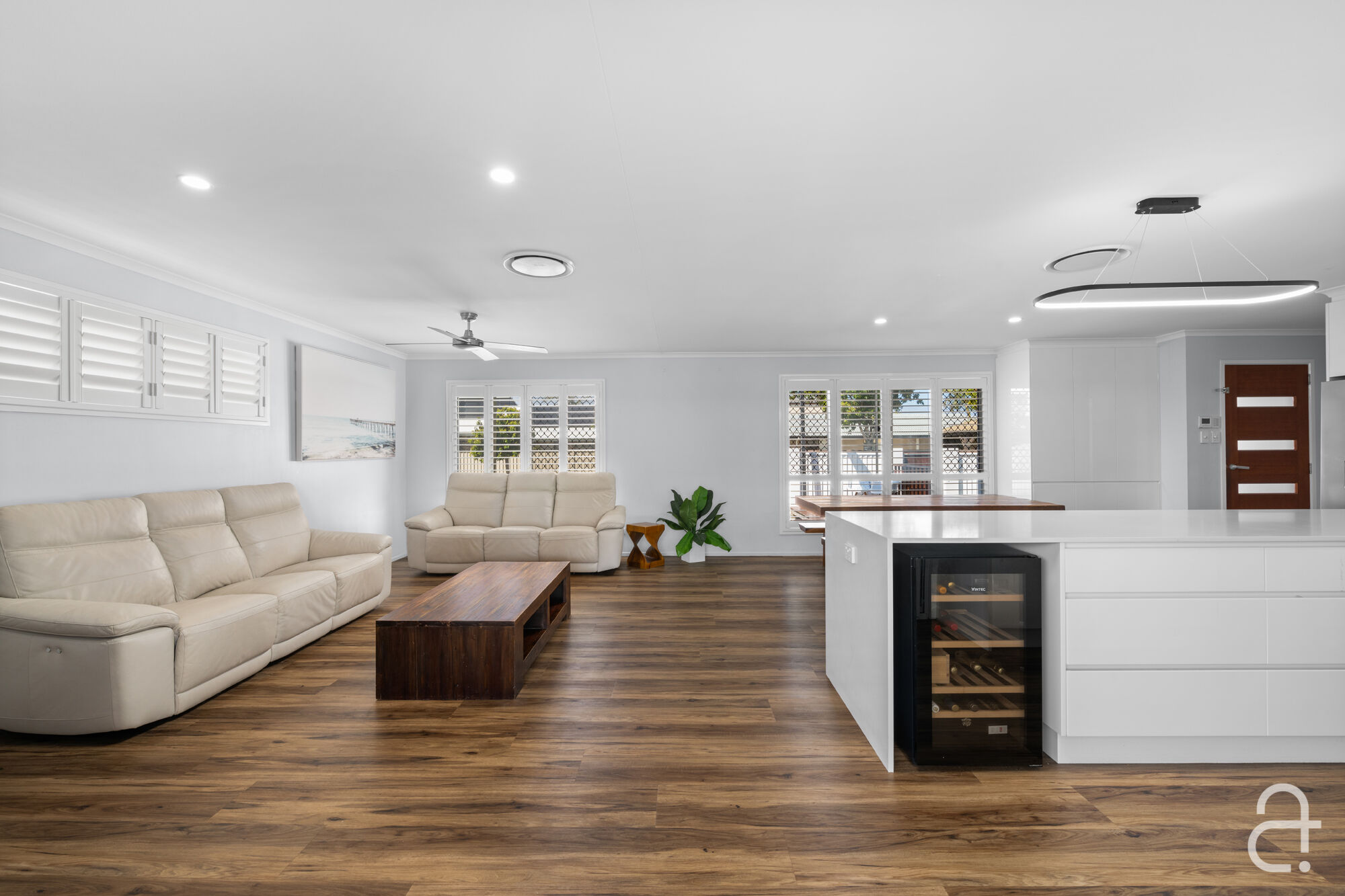 The three bedrooms all offer built-in storage, while the two modern bathrooms feature high-end finishes, ensuring every detail has been carefully considered. Indulge in the luxury of solar power, ducted air-conditioning, ceiling fans, security screens, and stylish plantation shutters that enhance the relaxed, breezy ambience throughout.