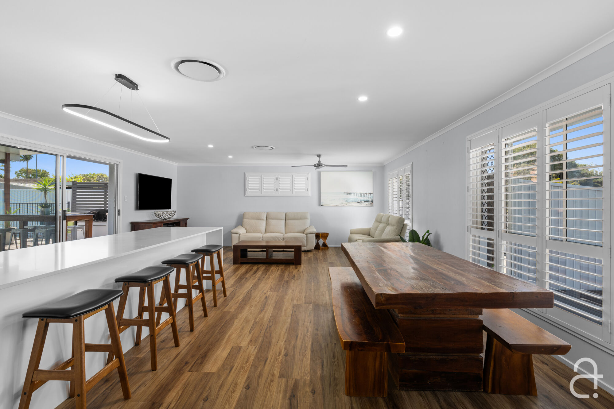 • 555sqm block in a quiet family friendly street close to the beach and Bokarina Precinct • Meticulously renovated using high-quality finishes and cool coastal colours • Spacious open-plan living and dining seamlessly connects to the outdoor entertaining area • Stunning contemporary kitchen with stone benches, two-pac cabinetry, ample storage, quality appliances and a tranquil pool view • Three bedrooms, all with built-in storage, serviced by two modern bathrooms • Solar power, ducted air-conditioning, ceiling fans, security screens and plantation shutters • Amazing all-weather insulated flyover outdoor entertainment zone with built-in cabinetry
