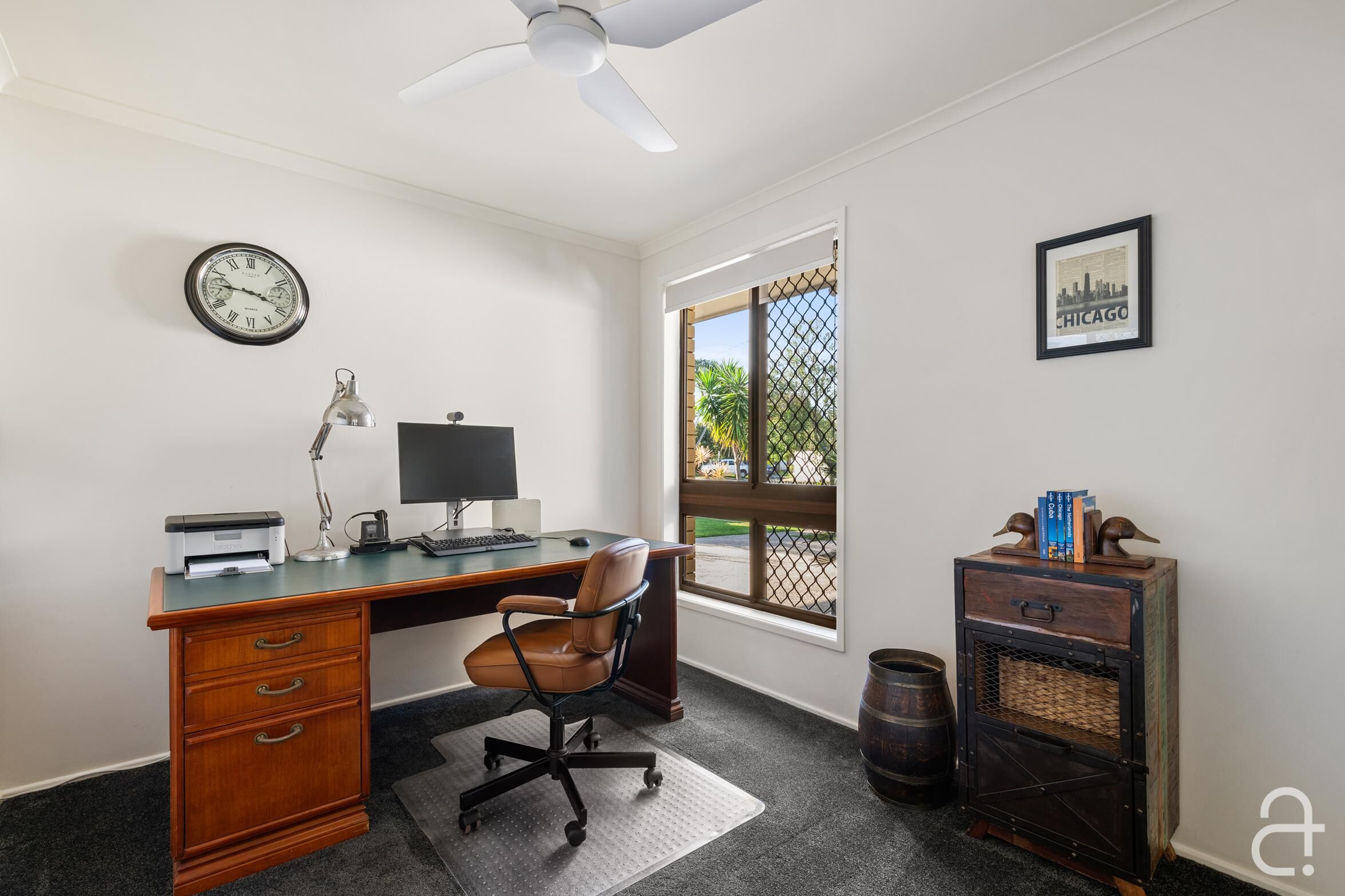 Outside, enjoy the privacy and tranquillity of your sun-soaked sparkling inground pool, perfect for those warm summer days. The double garage provides secure parking, while additional off-street parking offers ample space for boats or vans. The fully fenced yard is a haven of lush lawns and mature landscaping, providing both space and privacy.