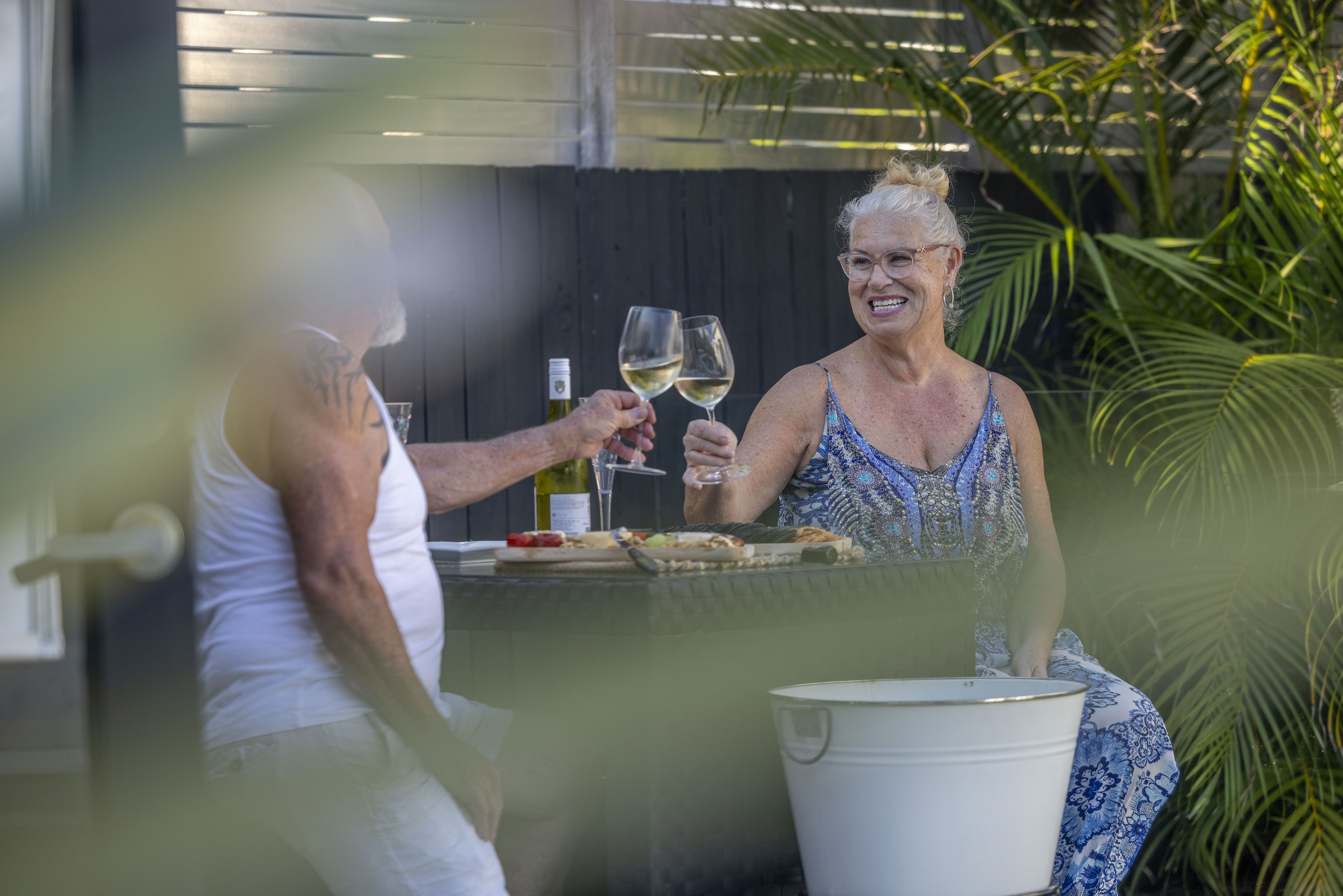 Beautifully designed kitchen with all of those modern touches you would expect from a newer renovation. From the double dish draw through to the Bosh oven, gas cooking, and waterfall end stone bench tops not to mention high ceilings and air conditioning to top it off. This amazing home has the perfect balance of luxury and comfort you are looking for in a beachside home.