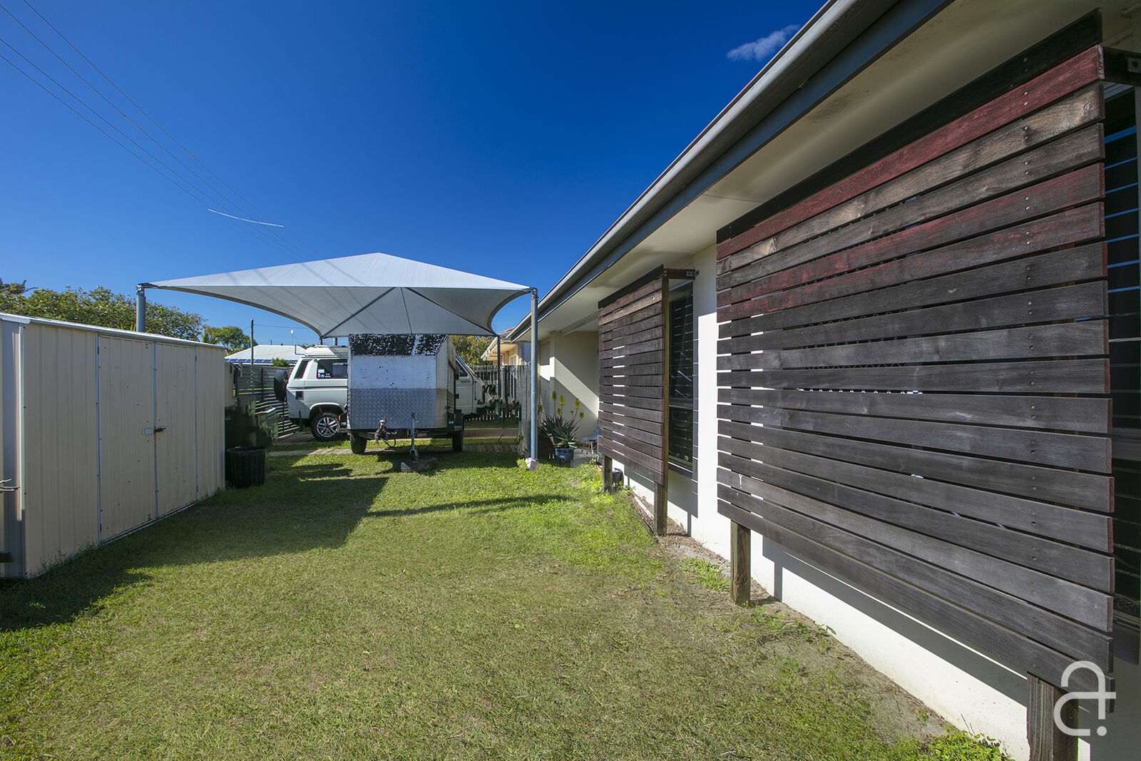 The expansive lawn areas are perfect for kids and pets, while the fully fenced yard provides privacy and peace of mind. Dual street access and a large two-bay shed offer ample space for boats, caravans, or additional vehicles. Inside, you'll find an updated kitchen with a dishwasher, three bedrooms, and a family bathroom. The home features air-conditioning in the living area and security screens throughout for added comfort and security.