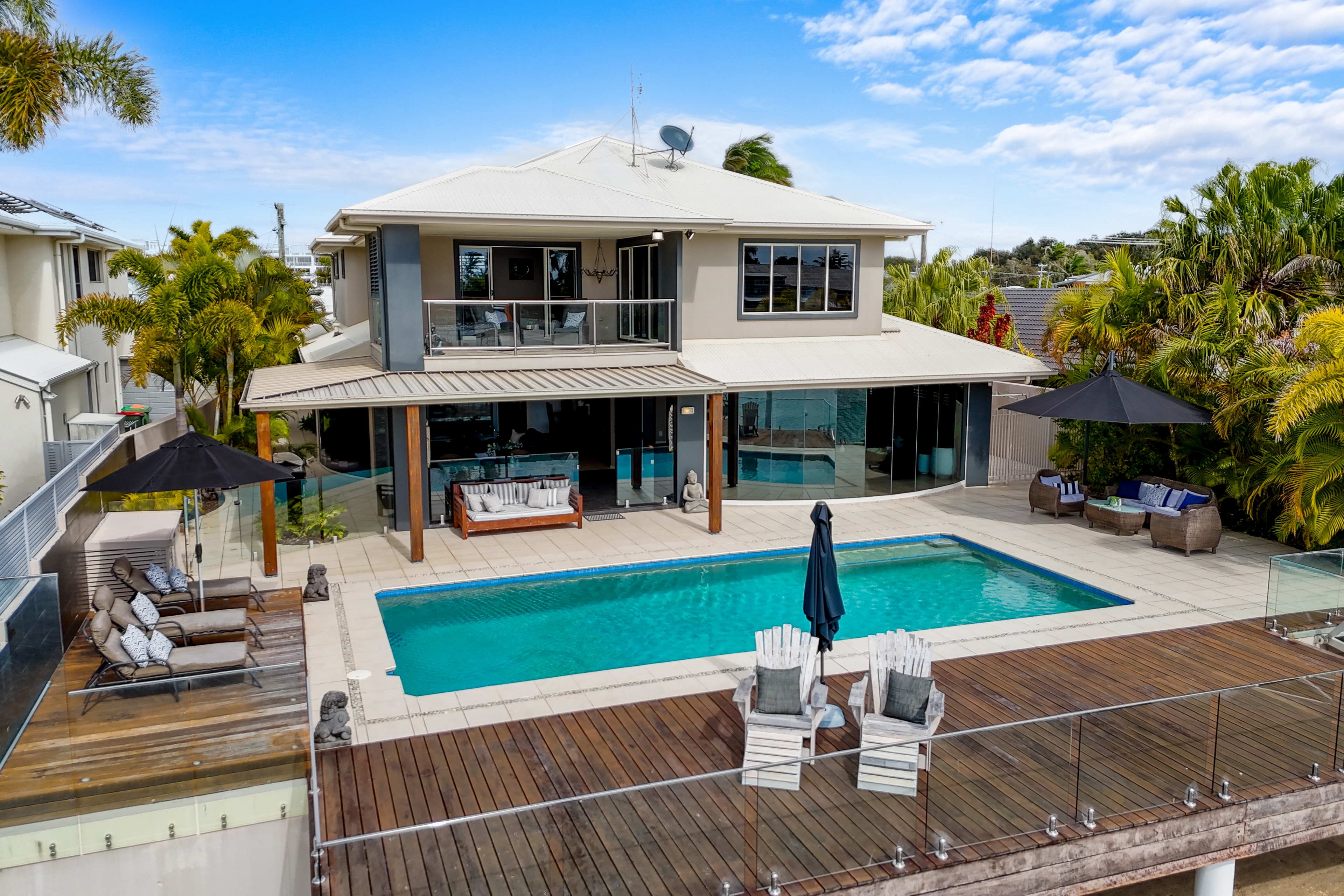 SOPHISTICATED NORTH-FACING WATERFRONT HOME WITH MAGNIFICENT CANAL VIEWS AND ELEGANT OUTDOOR SPACES Experience the pinnacle of opulent canal living in this north-facing masterpiece, ideally situated in a prestigious Minyama locale. This extraordinary residence offers 21 meters of direct canal access and breathtaking 180-degree water views that extend over the luxurious Minyama canals. The property features an expansive covered patio overlooking a magnificent 10.5-meter swimming pool and serene water views, with seamless deep ocean access right from your backyard.