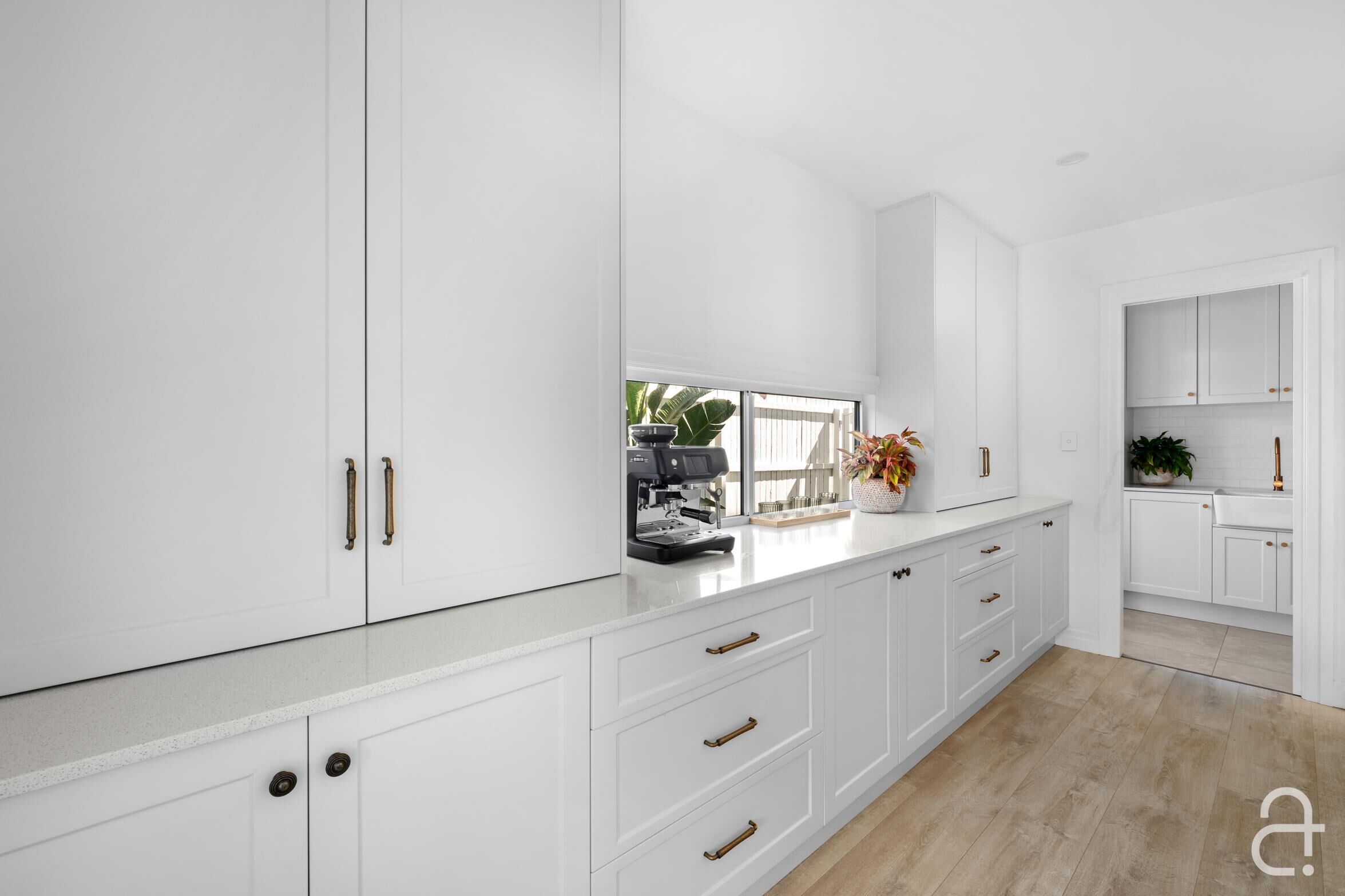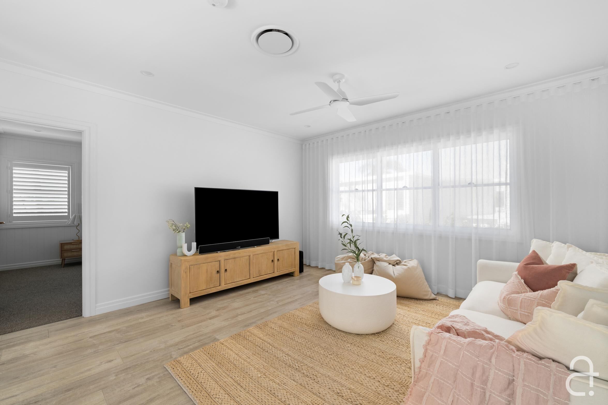 Every detail has been thoughtfully considered, from the classic white picket fence and plantation shutters to the built-in custom cabinetry, soothing neutral colours, and timeless finishes. Quality fixtures, ducted air-conditioning, ceiling fans, and solar power ensure year-round comfort and efficiency.