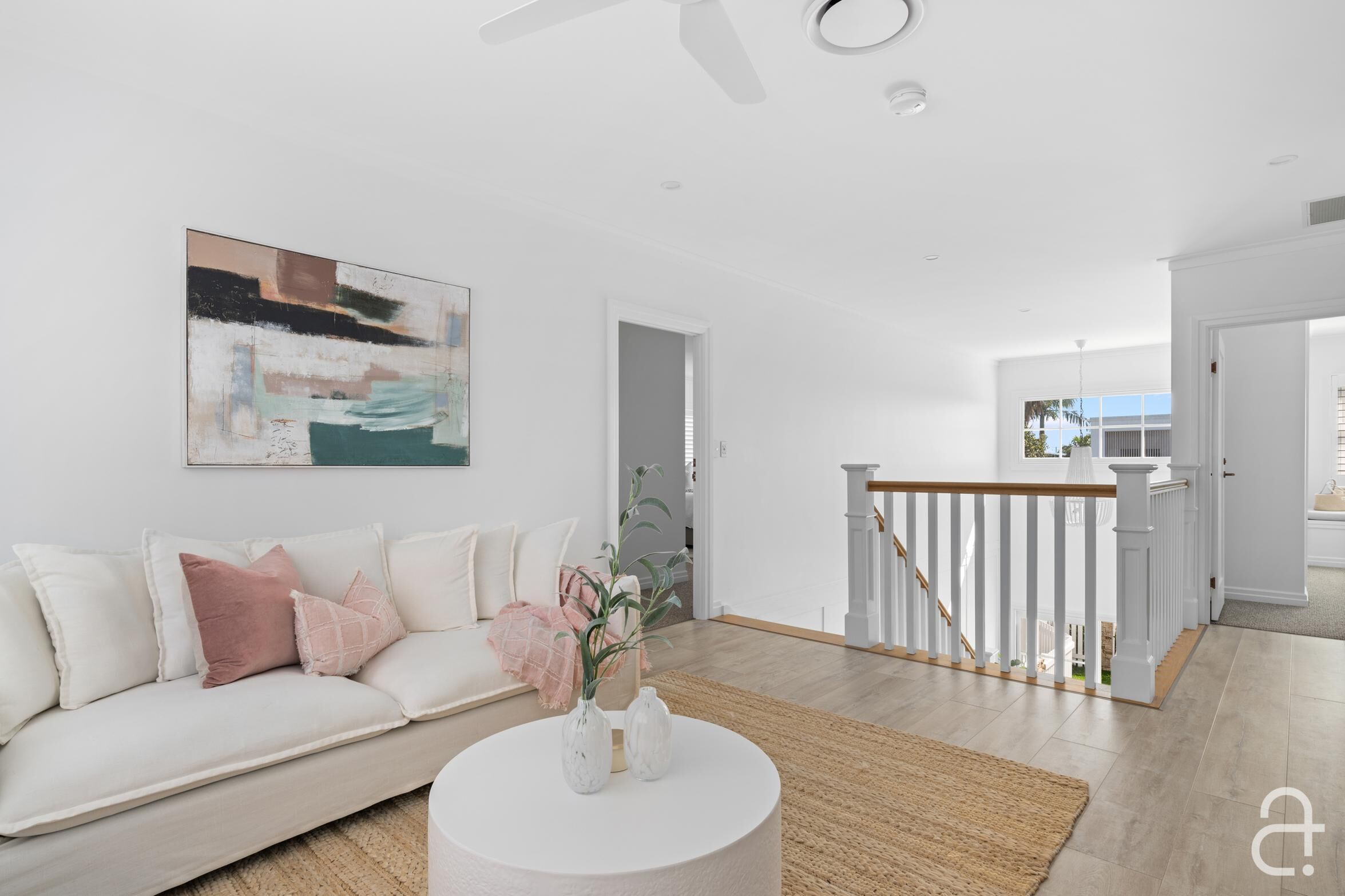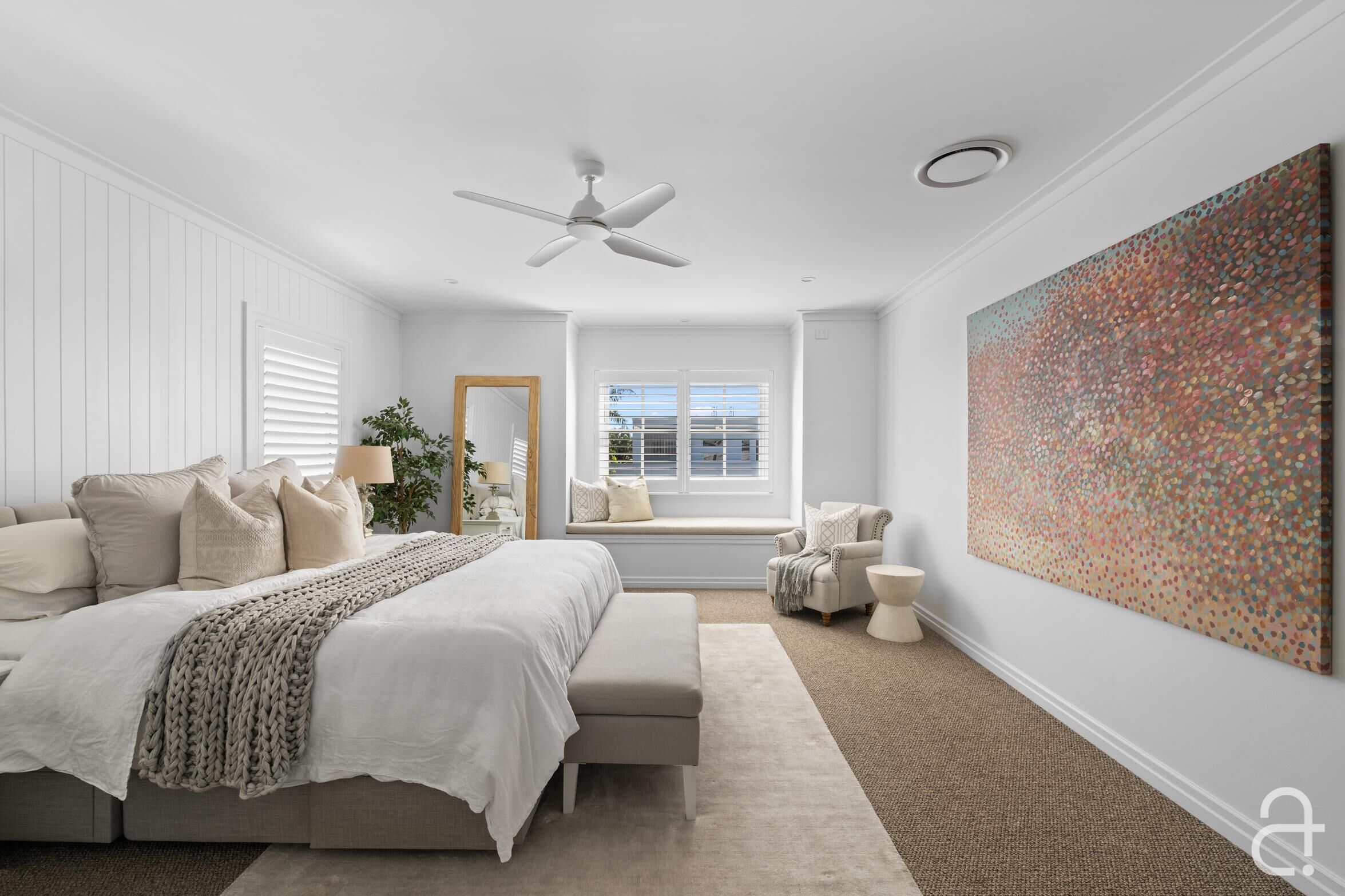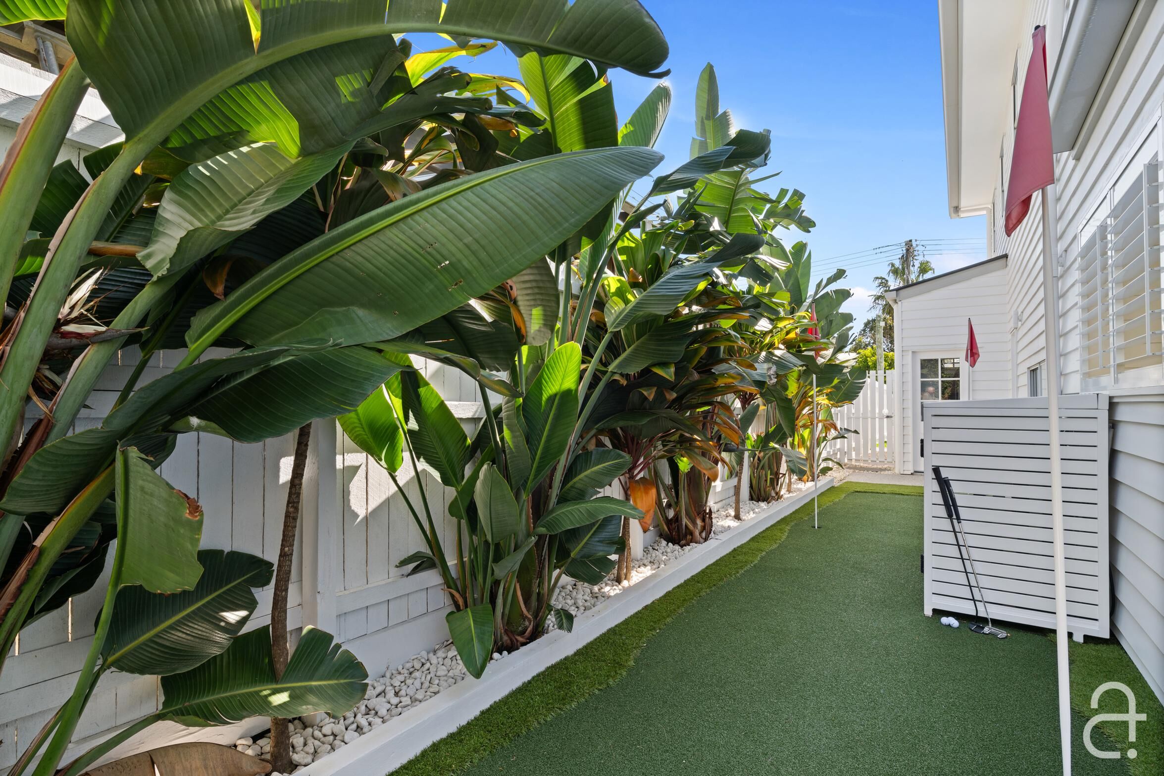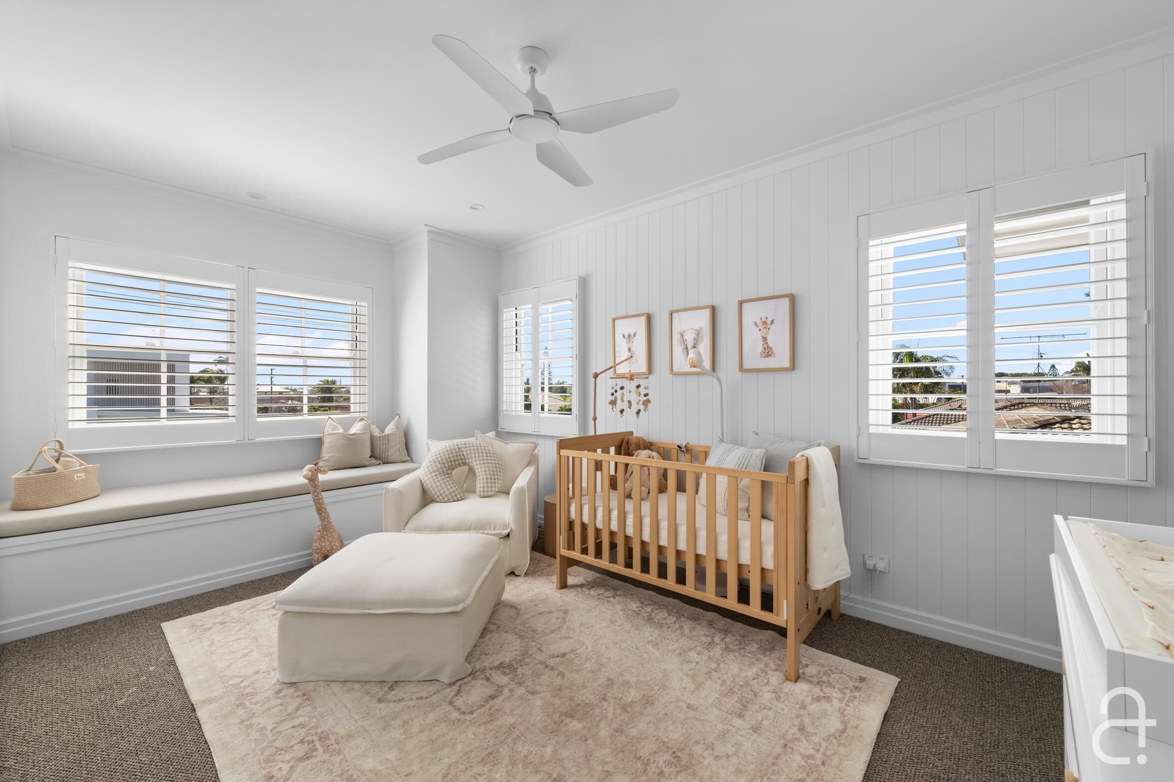 • Classic style completed by a white picket fence, plantation shutters, built in custom cabinetry soothing neutral colours, timeless finishes and quality fixtures • Ducted air-conditioning, ceiling fans, solar power • Short stroll to the beach, coastal pathway, playgrounds and B-Fresh complex