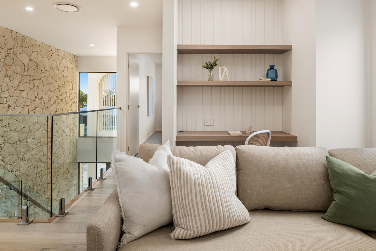 Upstairs, the home continues to impress with its thoughtful design and additional living space. At the top of the stairs, you'll find a second lounge area, perfect for use as a family retreat or media room, providing extra comfort and versatility. Adjacent to the lounge is a convenient study nook, ideal for working from home or as a dedicated space for homework or personal projects. These additional areas ensure the upstairs layout is as practical as it is stylish, offering flexibility for growing families or those needing space to unwind.