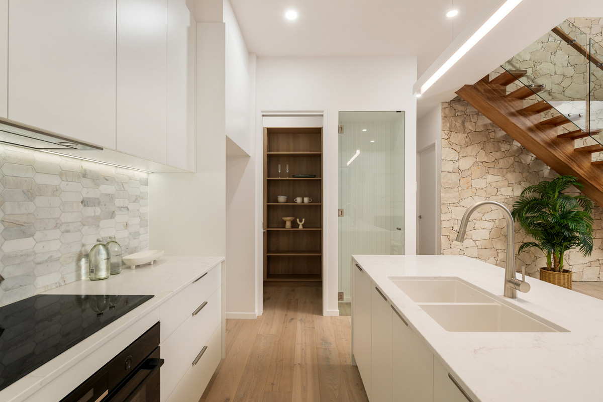 Built for those who appreciate both style and practicality, the kitchen is the heart of the home. Fitted with premium appliances and boasting built-in wine storage, it's a space designed for both the home chef and the entertainer. The sleek finishes and ample storage further enhance its functionality, ensuring it serves as both a beautiful and practical centerpiece for family life and social gatherings. A separate pantry and plenty of storage options make it a dream kitchen for even the most discerning buyers.