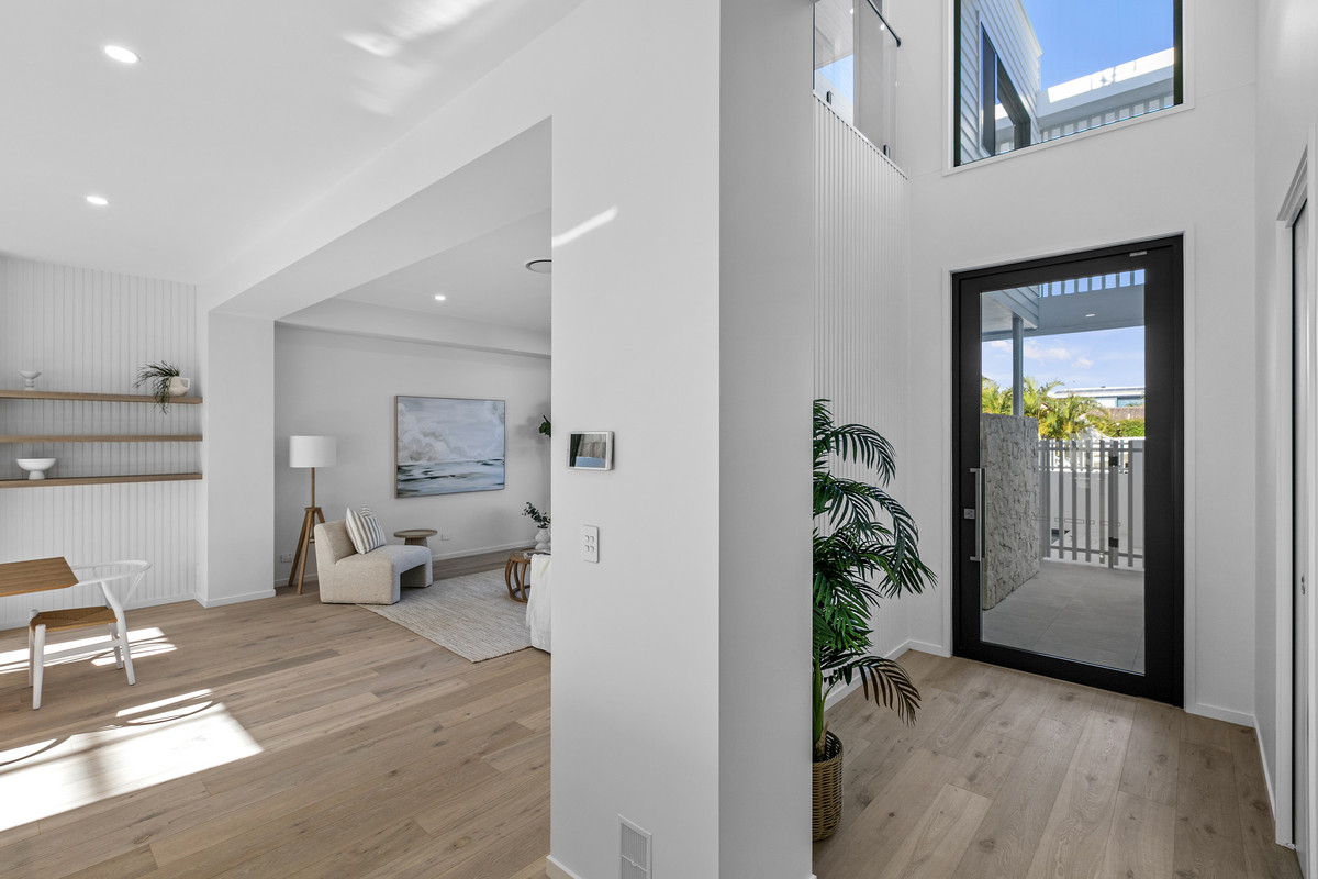 As you enter, you are welcomed into a light-filled home that emphasises thoughtful design and high-end finishes. The ground floor features an expansive open-plan layout with 3-meter-high ceilings, enhancing the sense of openness. The living and dining areas seamlessly flow into the outdoor entertaining space, where as alfresco area and a sparkling saltwater pool await. With manicured landscaping and a east-facing orientation, natural light fills the home, providing a warm and welcoming atmosphere while capturing the coastal breeze.