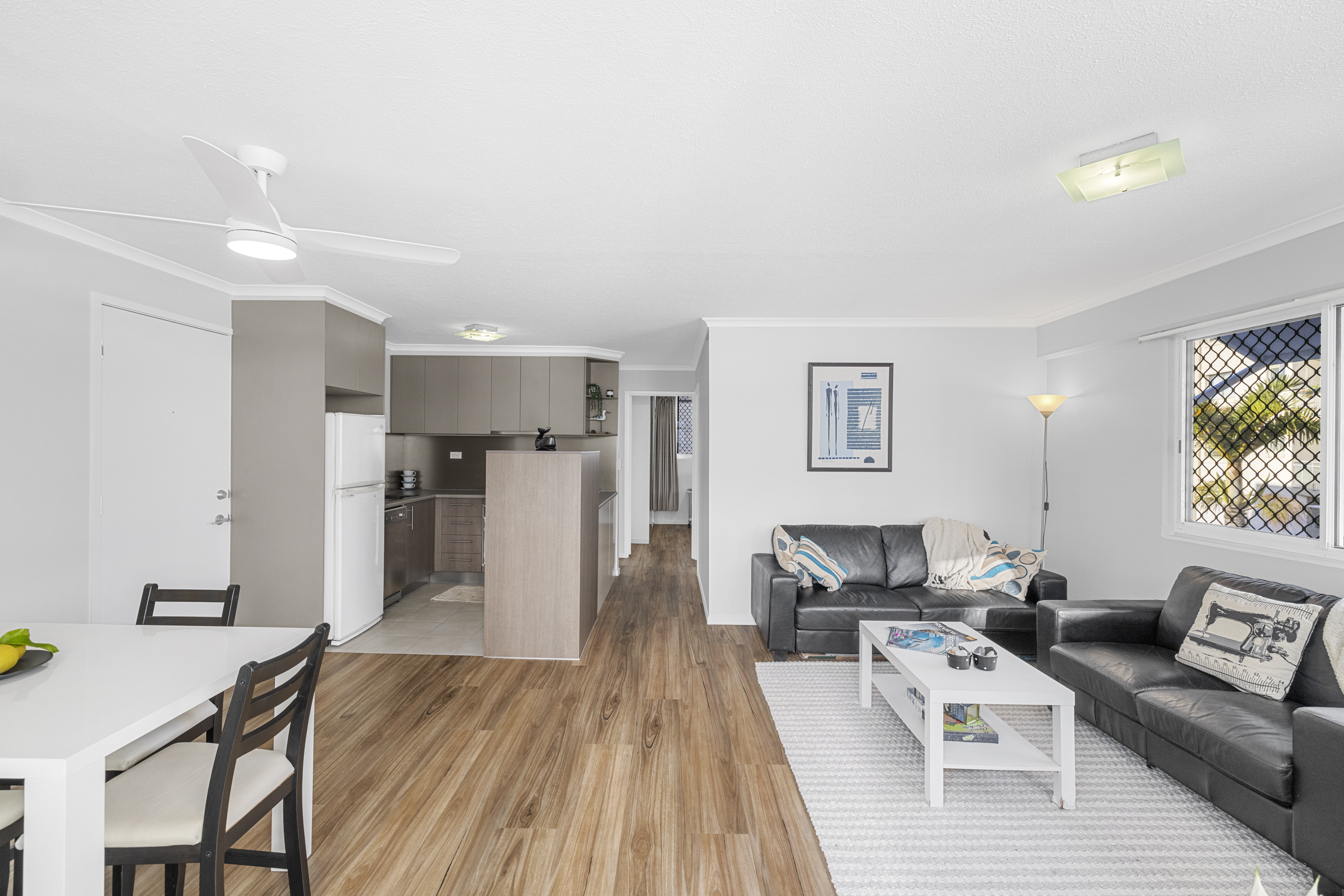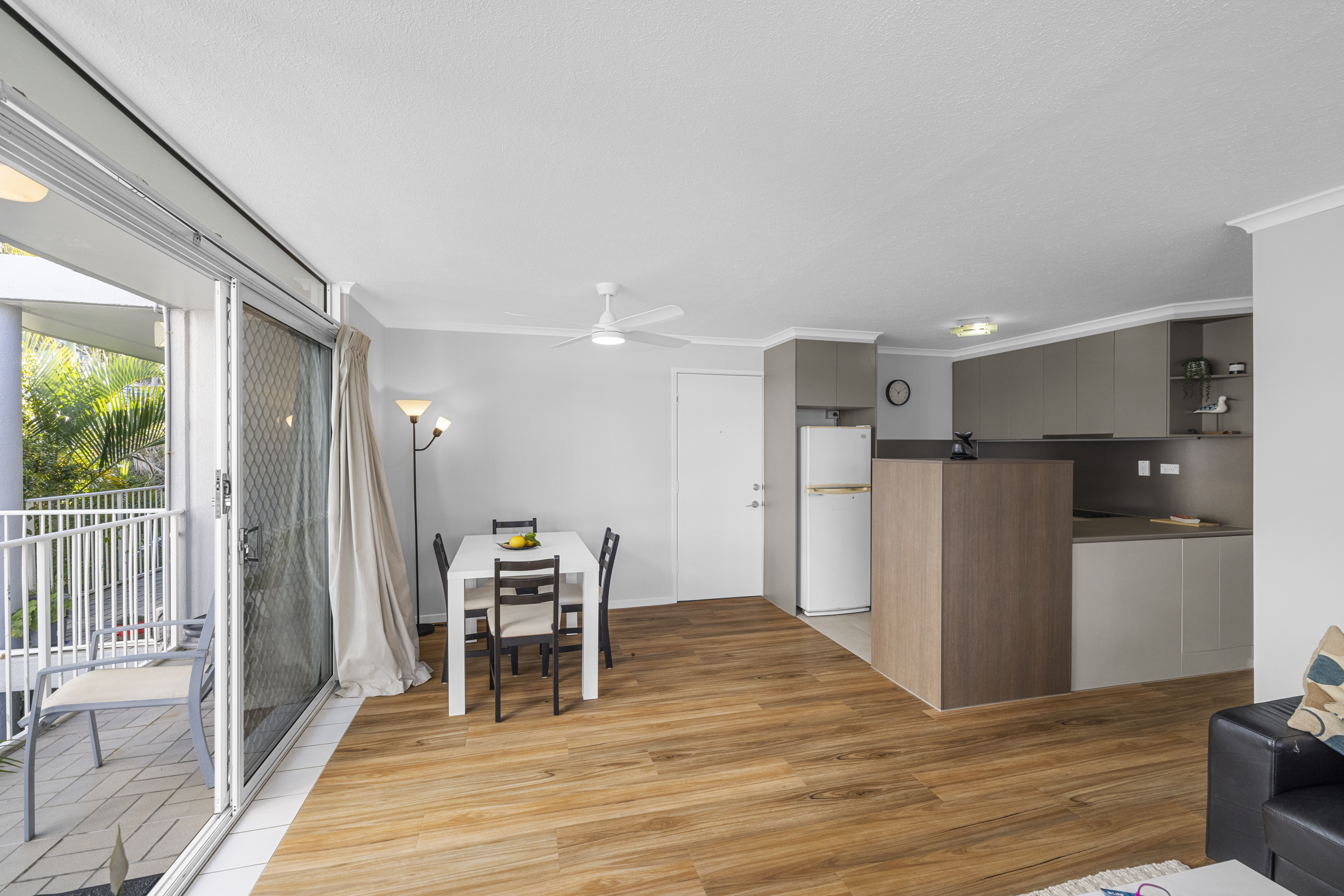 The true allure of this coastal haven lies in its seamless convenient open plan living. The living area extends to a breezy balcony, where views of the nearby Kawana Surf Club serve as a reminder of the pristine Buddina Beach just moments away. Residents of