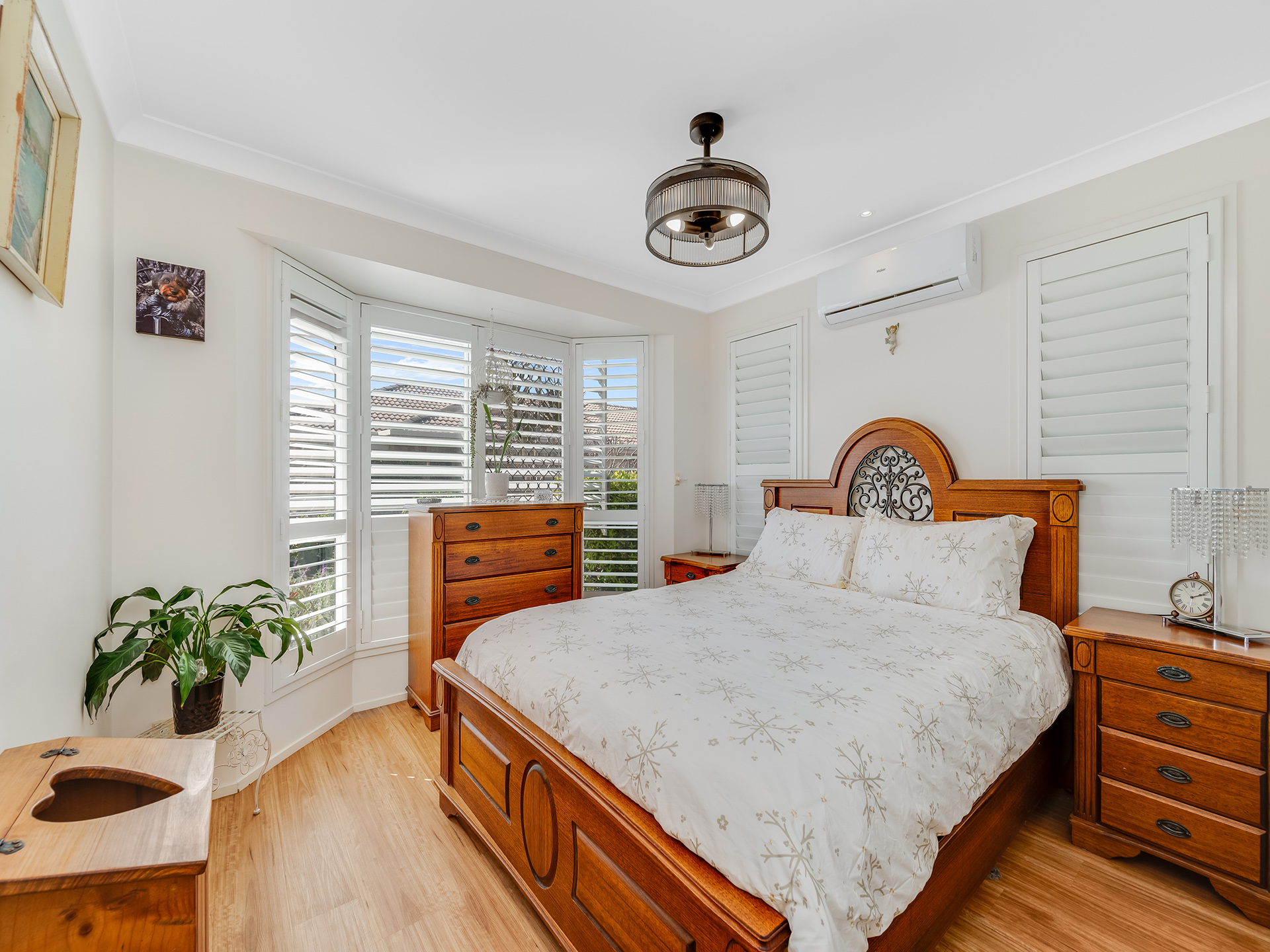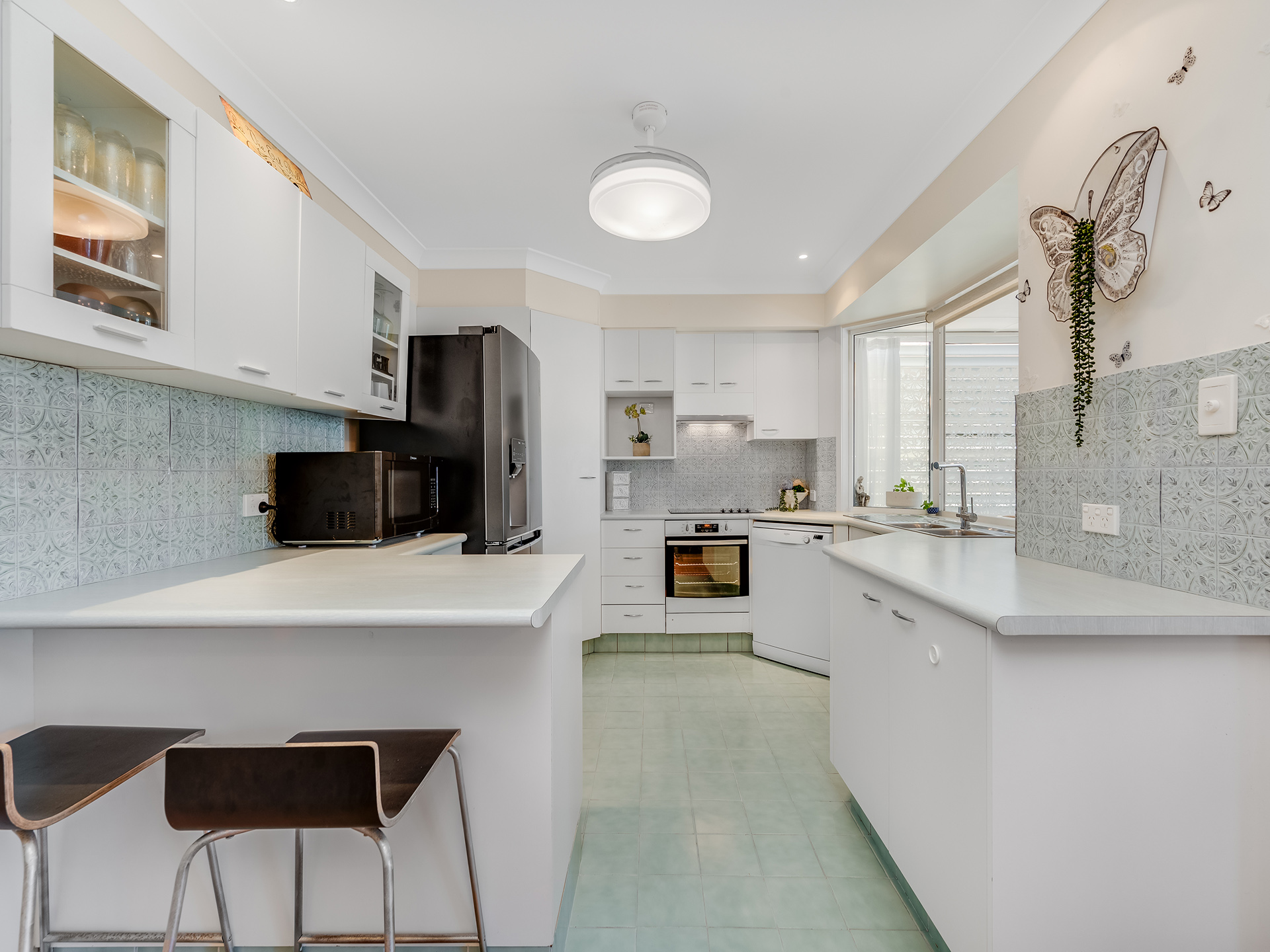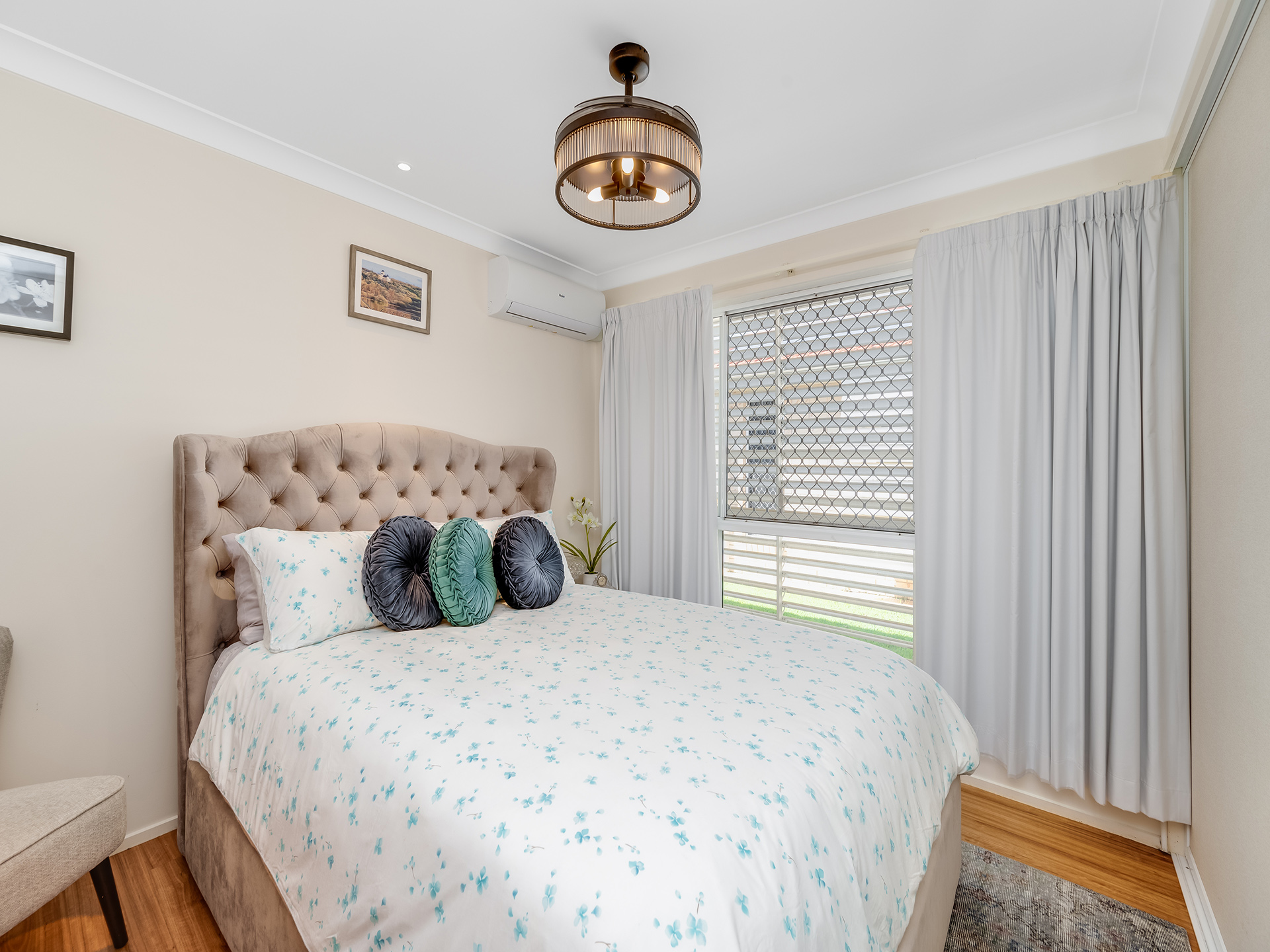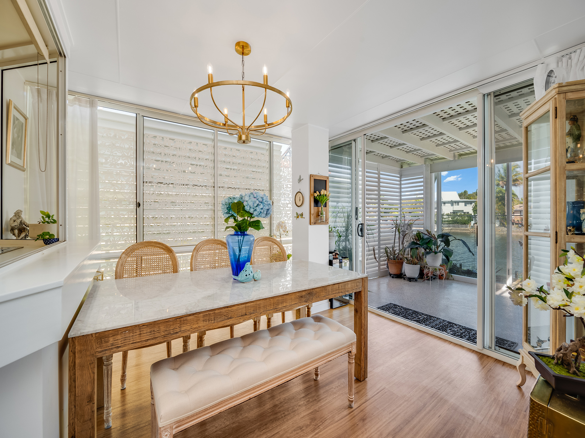 The Florida Room at the rear offers weather safe and secure enclosure with a Vergola roof to allow natural light into the multi-purpose space. Stacker sliding glass doors open onto the fenced in garden for additional security and peace of mind.