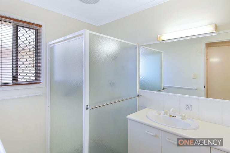 Both bedrooms are well-sized, with built-in robes, and the master also enjoys a charming bay window. The villa includes a separate bath and toilet, air conditioning, ceiling fans, and security screens throughout for year-round comfort.