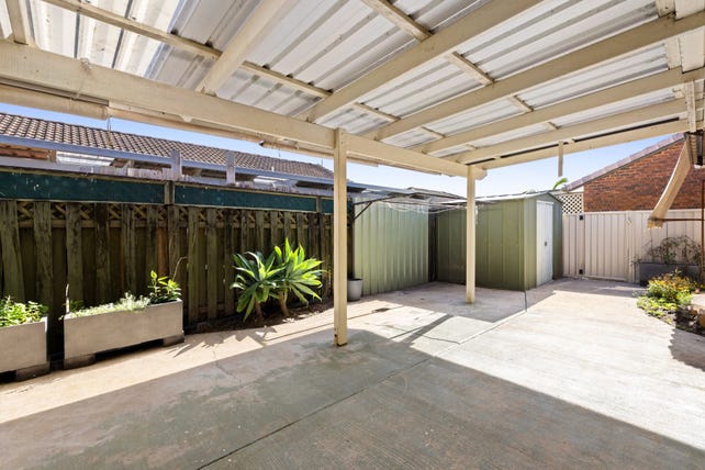 Private outdoor patio with cemented flooring, garden shed, and water tank – ideal for relaxed outdoor living